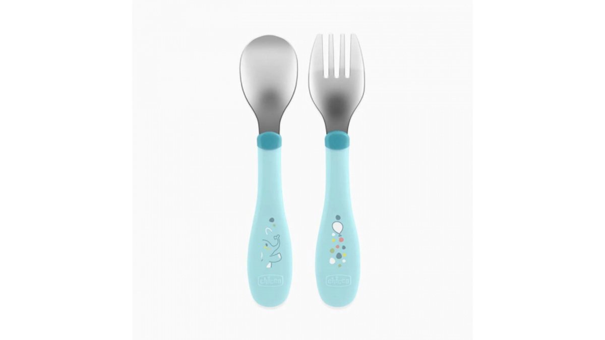 Чико – ложка и вилка металлические 18т+ синего цвета