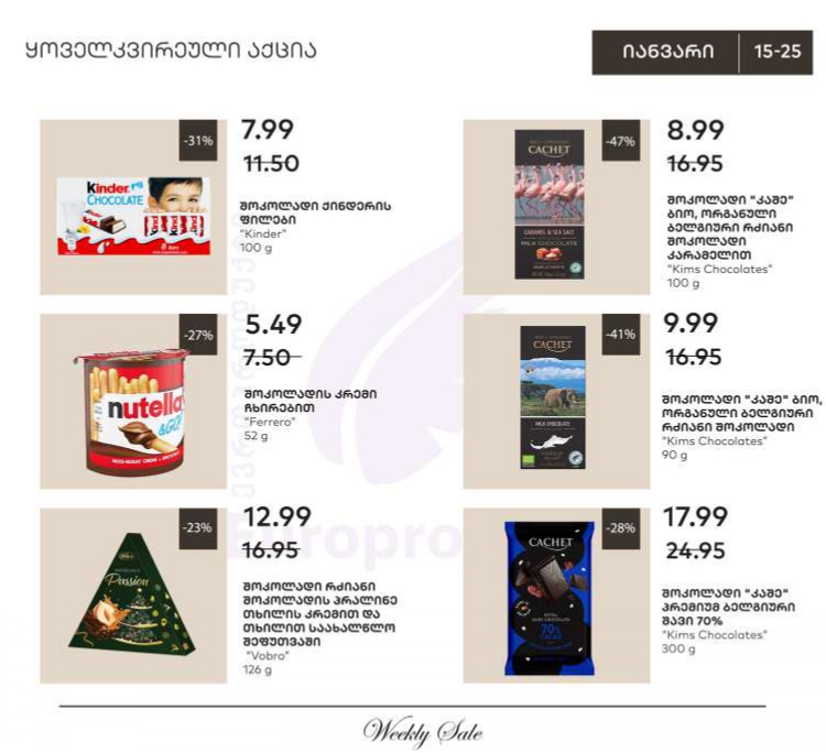 История распродаж товара: Шоколад Kinder в плитках 100 г