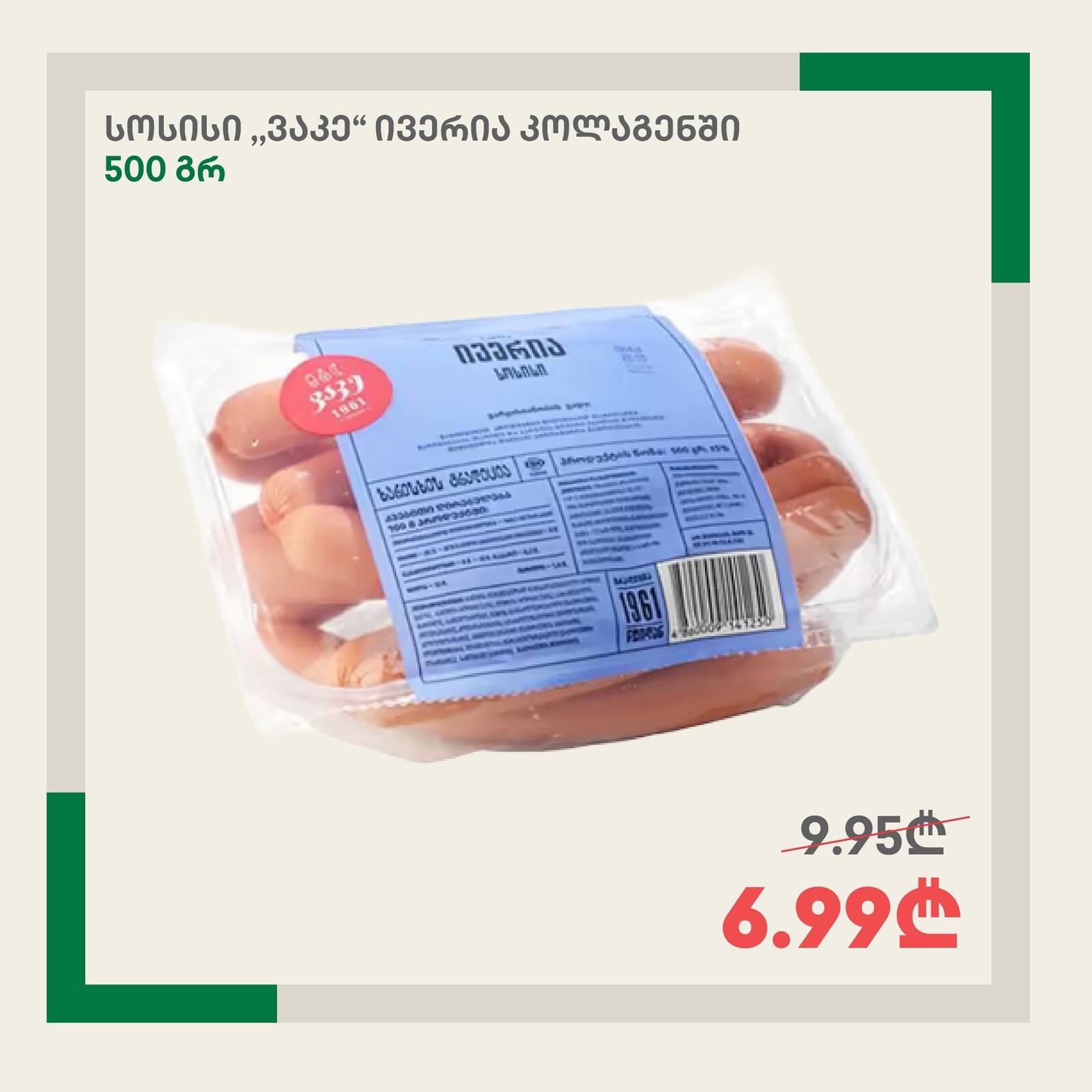 Сосиски «Ваке» Иверия в коллагеновой оболочке 500 г