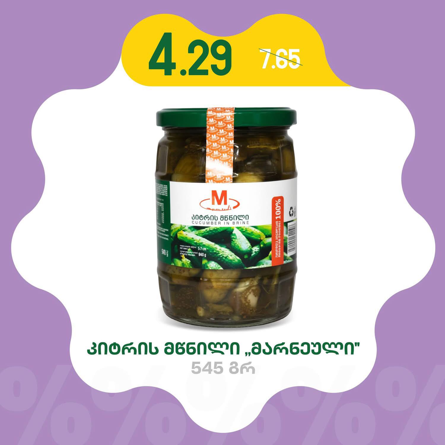 История распродаж товара: Огурцы маринованные 545 г