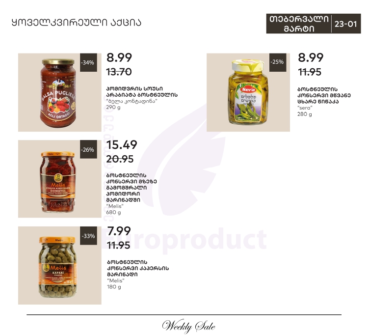 История распродаж товара: Вяленые на солнце томаты в маринаде 680 г