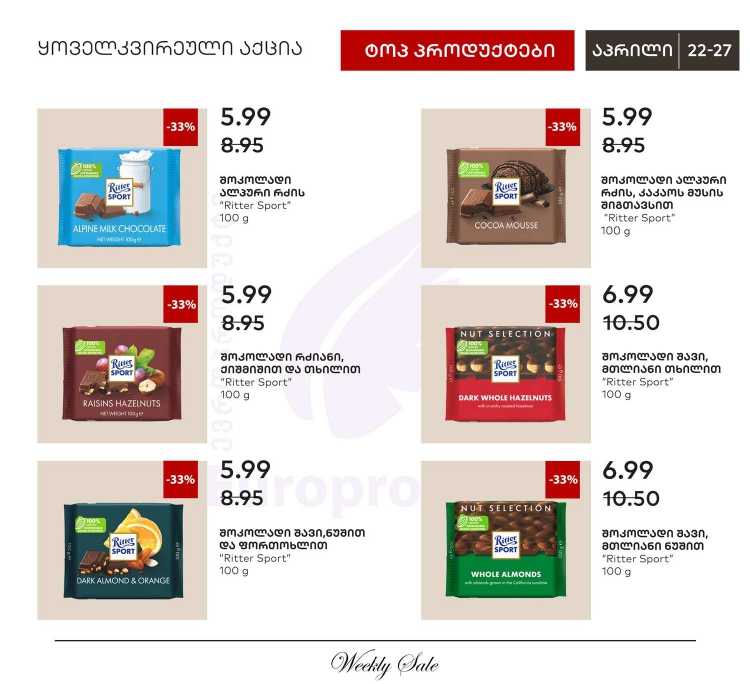 История распродаж товара: Шоколад с изюмом и орехами 100 г
