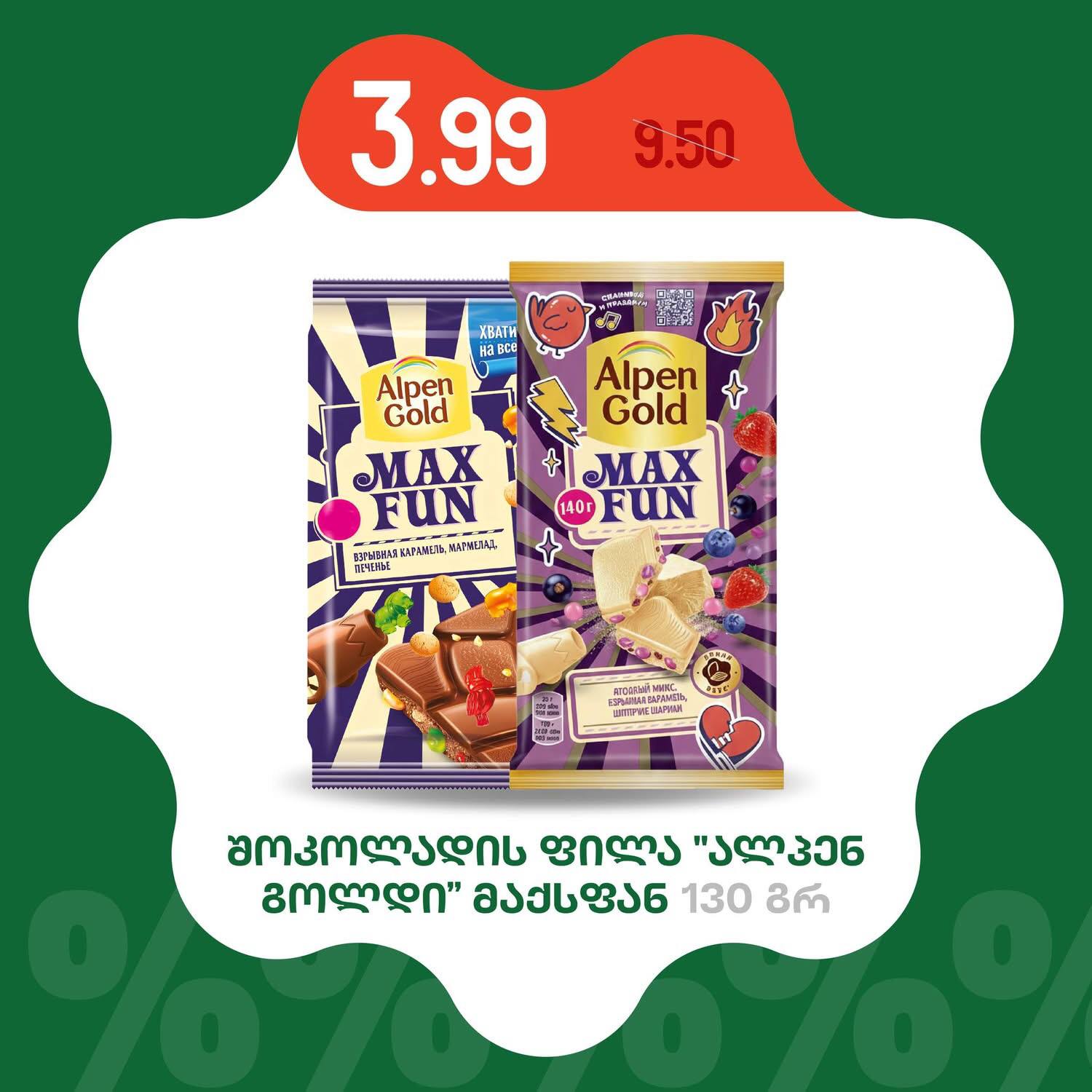 Шоколадная плитка «Alpen Gold» Max Fun 130 г