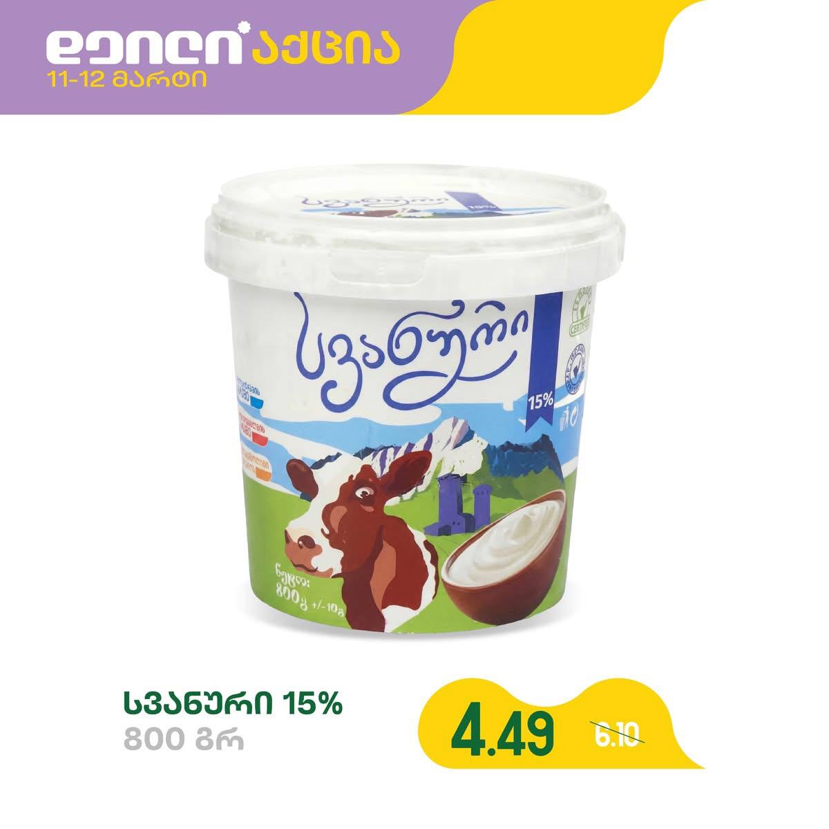 Сметана Сванури 15% 800 г