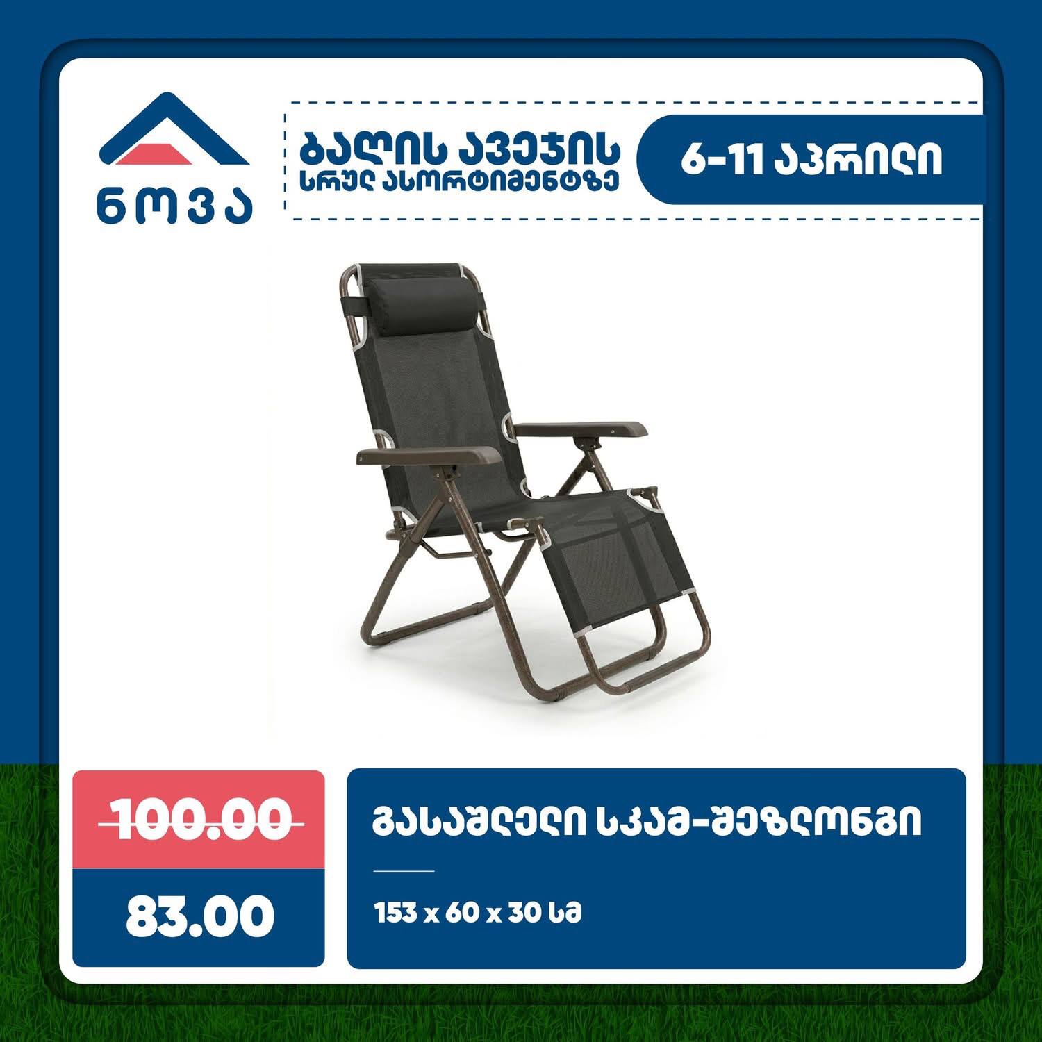 Раскладной стул-шезлонг 153 x 60 x 30 см