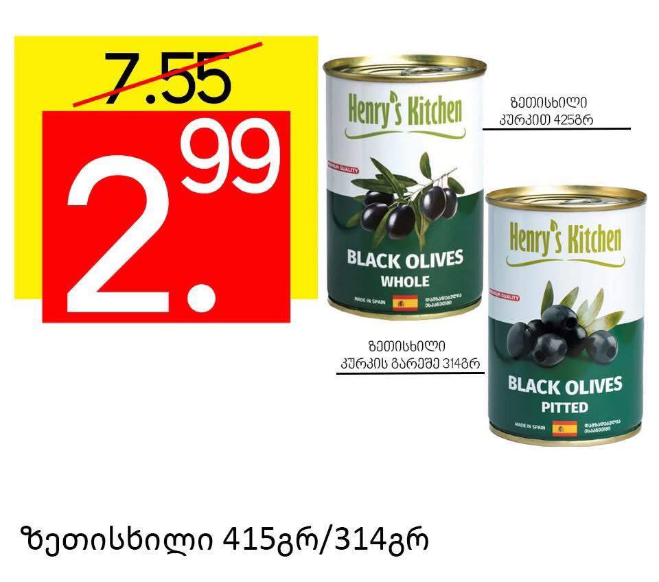 Маслины без косточки Henry's Kitchen 314 г / 415 г