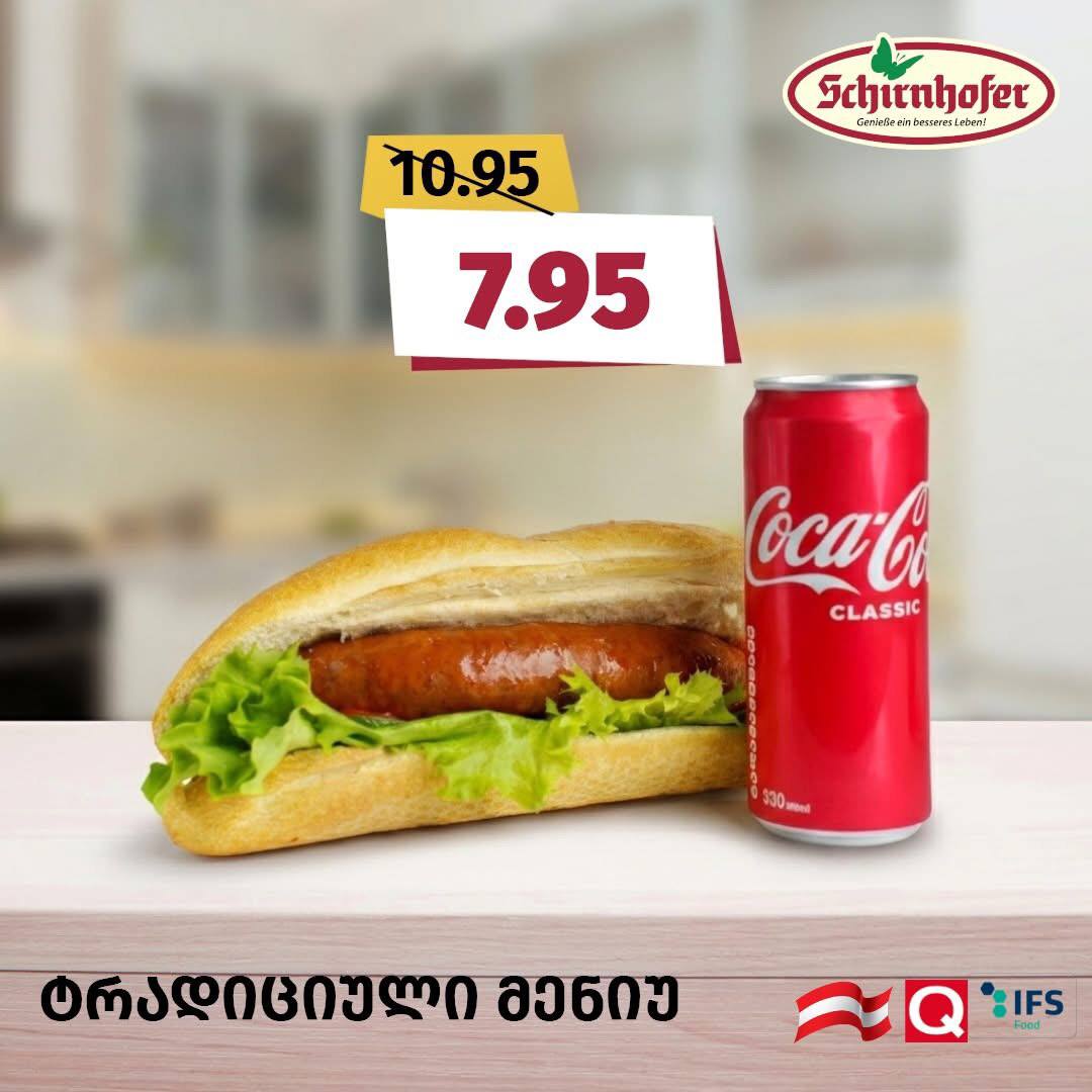 Традиционное меню (хот-дог и Coca-Cola) 1 порция + 330 мл