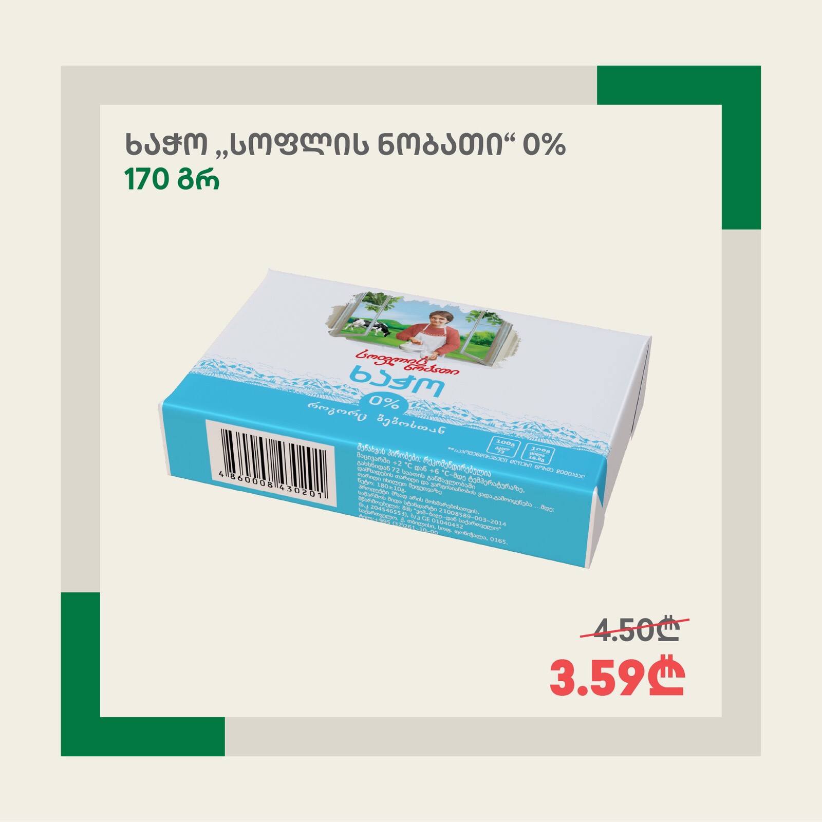 Творог «Соплис Нобати» 0% 170 г