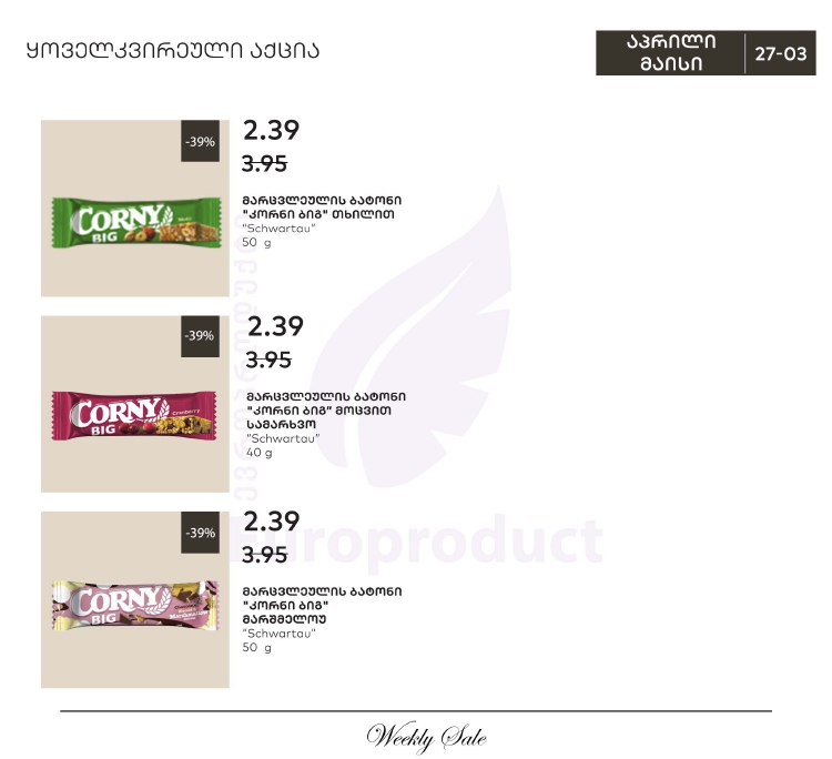 История распродаж товара: Злаковый батончик Corny BIG с фундуком 50 г