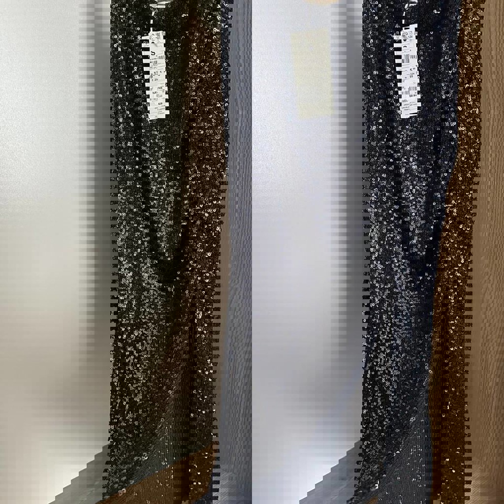 Юбка с разрезом в пайетках Reserved, новая, с биркой. Размер: S. Цвет: тёмно-синий. Длина: ~ 77 см. Есть подкладка в виде мини-юбки. Ничего не просвечивается.