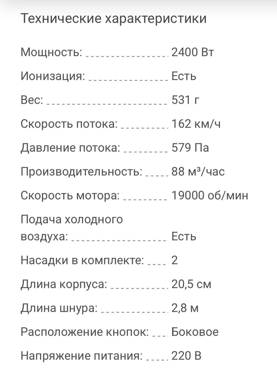 Продам фен coifin. Технические характеристики на фото. Работает исправно, пользовались мало. К сожалению, никаких насадок нет