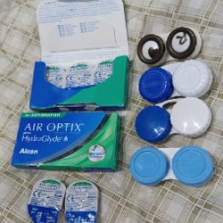 Раствор для дезинфекции контактных линз объёмом 300 мл, почти полный.