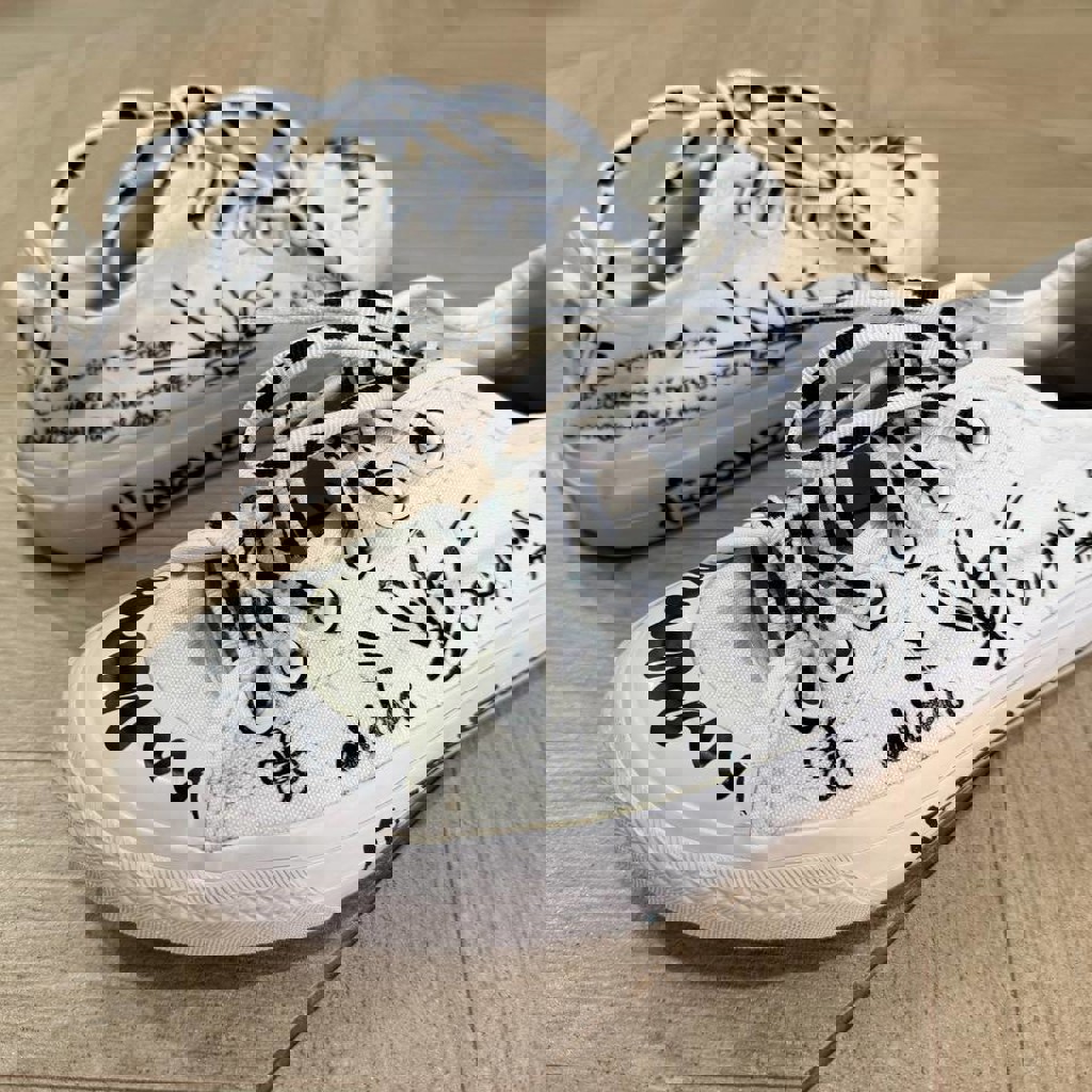 Белые canvas-кеды с заводским doodle-принтом. Оригинал, не кастом. Состояние хорошее, без серьёзных дефектов.