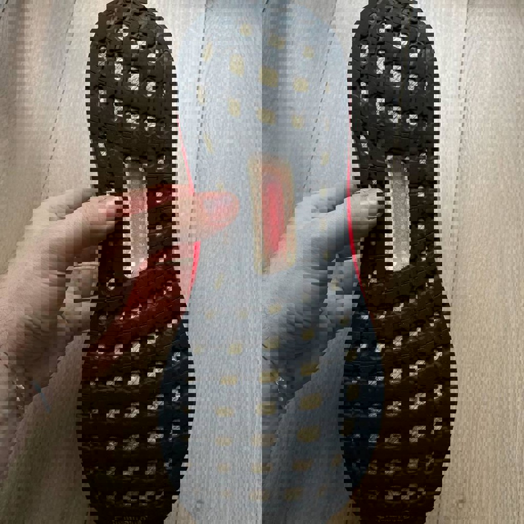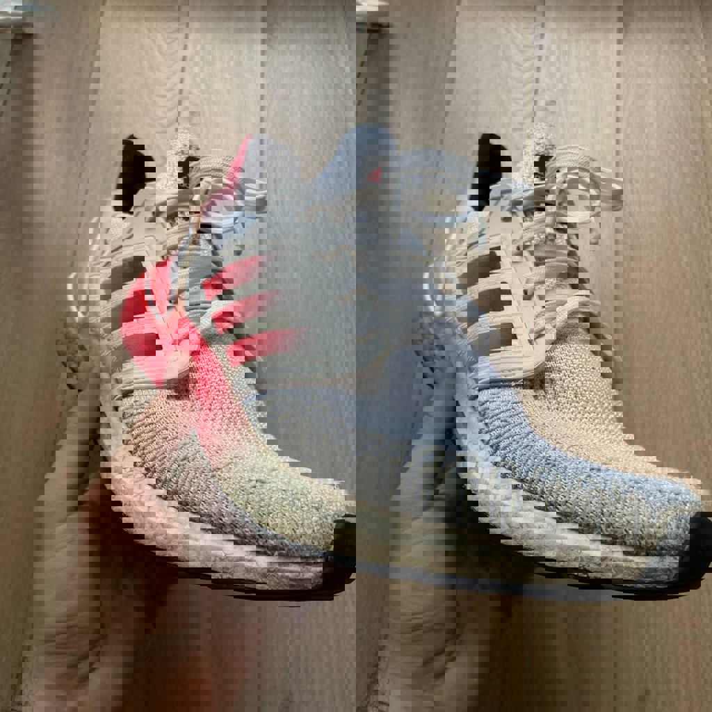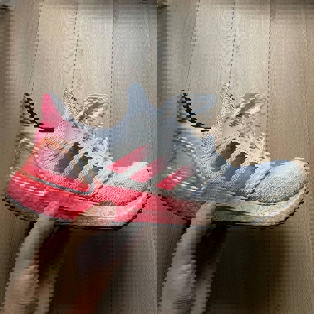 Оригинальные Ultraboost с амортизацией Boost — одна из самых комфортных моделей для города и бега. Технология Boost — мягкая, пружинящая подошва, лёгкий дышащий верх Primeknit, хорошая фиксация стопы. Цвет: белый / градиент розовый. Состояние: есть следы носки, учтено в цене. По комфорту всё отлично — ещё долго прослужат.