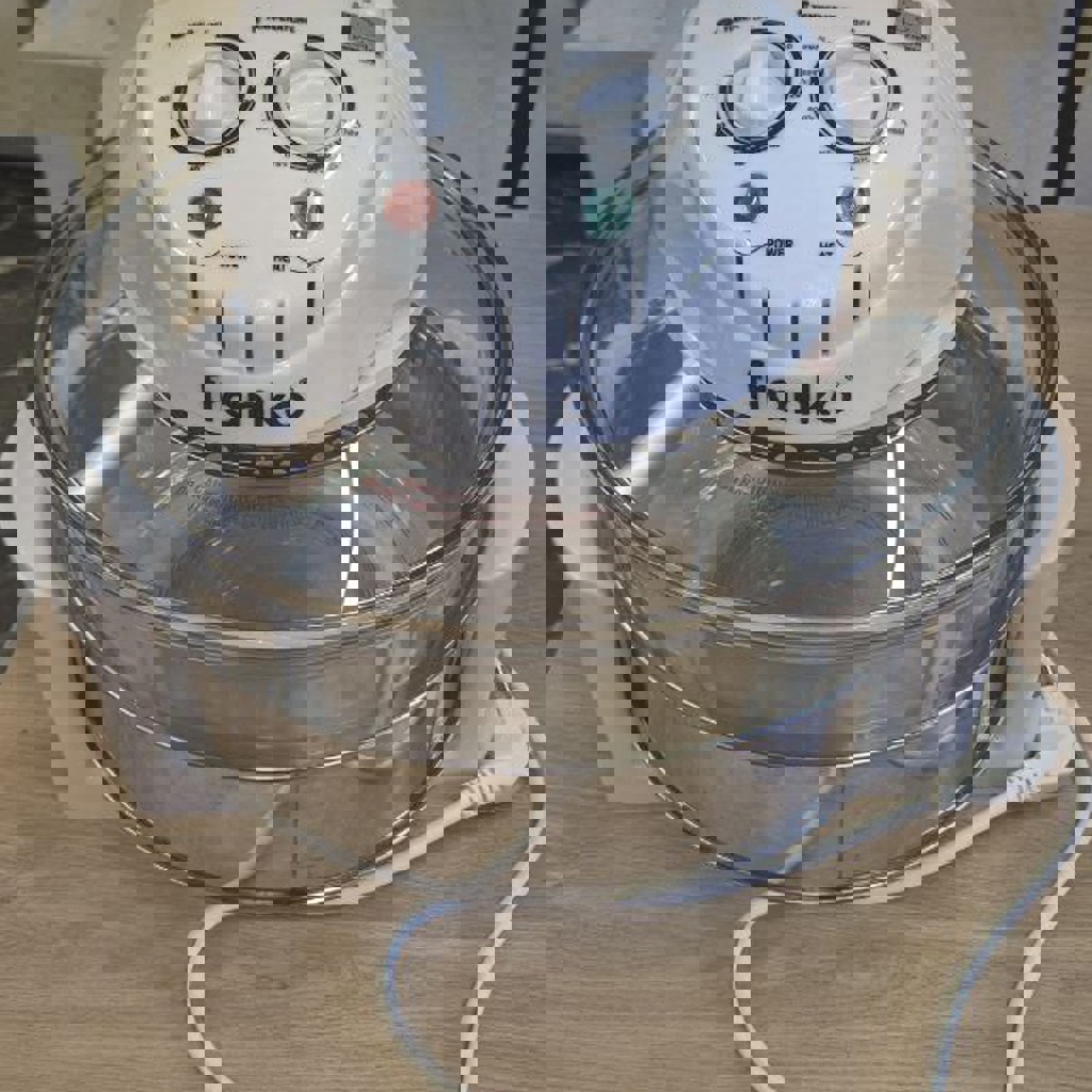 Абсолютно новый, со стеклянной чашей из Боросиликатного стекла. Галогеновая печь, возможность варить, парить, жарить, тостить, размораживать и готовить без холестерина.