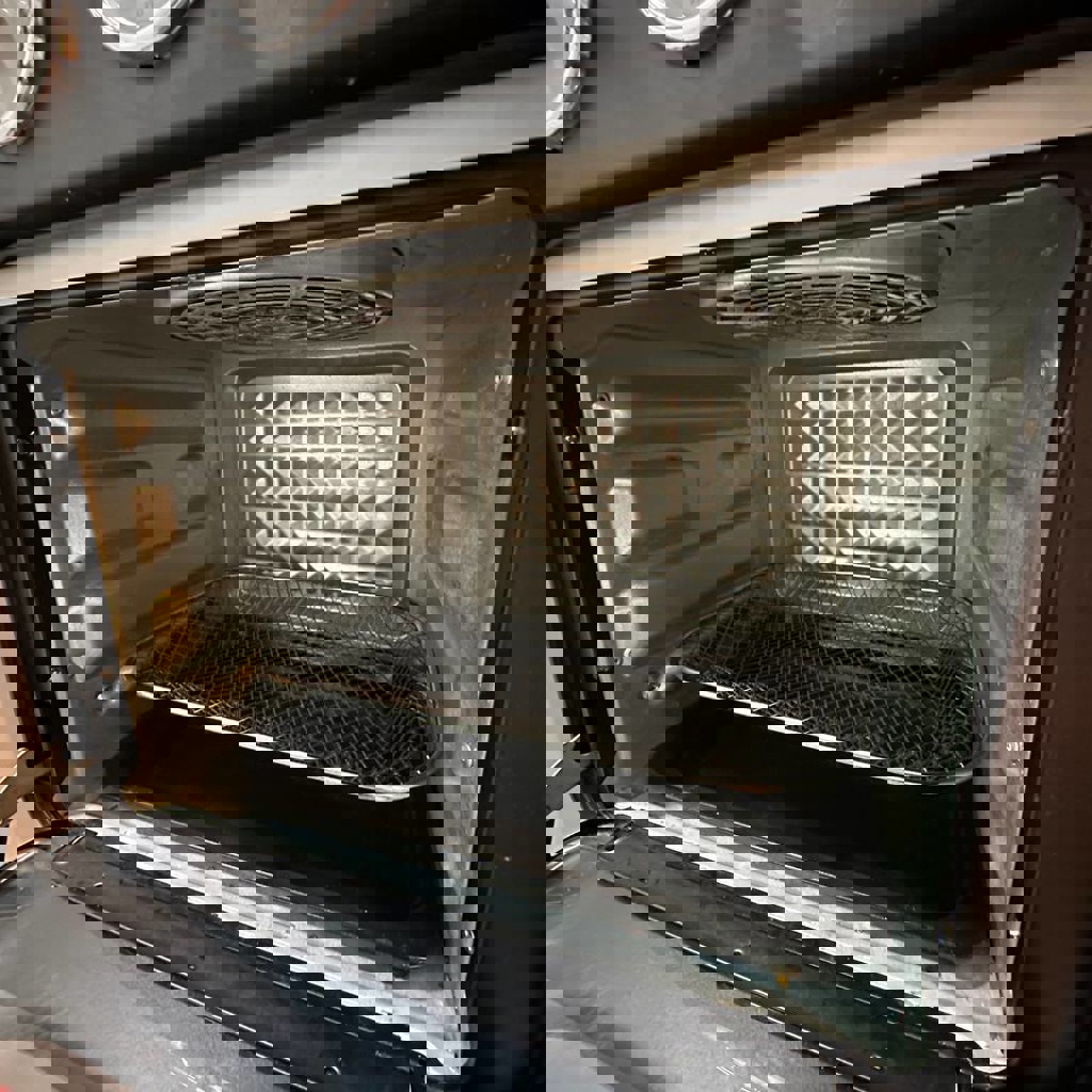 Отличная мини-печь, которая заменит духовку и фритюрницу. Идеально для съёмных квартир! Что умеет: 5 режимов: Аэрогриль (картофель фри без масла!), гриль, тосты, пицца и дегидратор. Мощная конвекция — готовит быстрее обычной духовки. Объем 16л — компактная, не занимает много места на кухне. Состояние: Снаружи — идеал, выглядит отлично. Внутри — на 4/5 (есть рабочие пятнышки от жира, на вкус еды не влияют). Комплект: Полный — 2 противня, решетка, корзина для фри и родная коробка.
