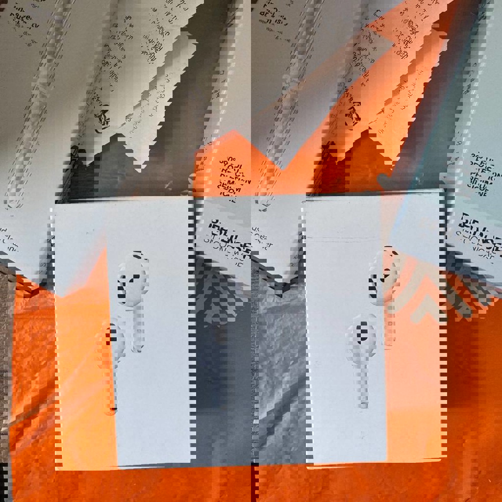 Наушники AirPods 4 с активным шумоподавлением, в комплекте чехол и щетка для чистки наушников. Использовались 3 месяца, ни одной царапины и ни единого дефекта. Работают отлично.