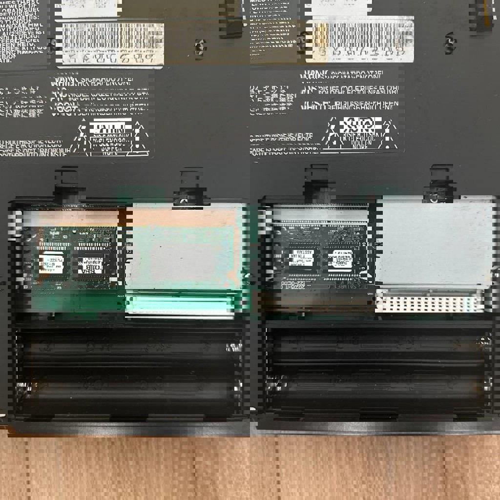 32 мб памяти, все работает отлично, в комплекте карта памяти и блок питания, так же возможна работа от батареек или павербанка.