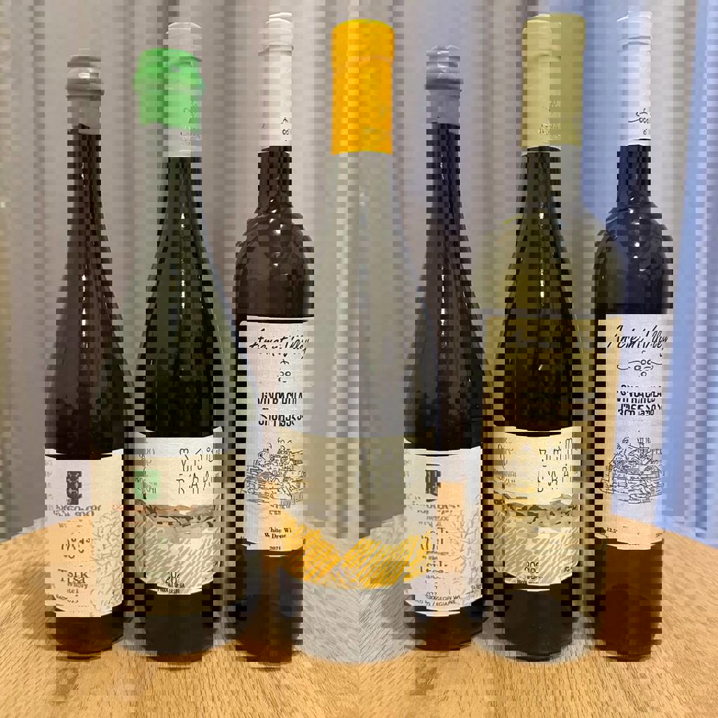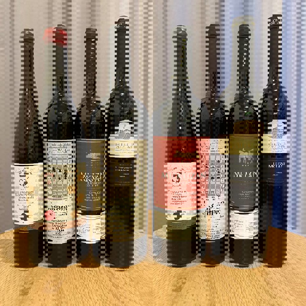 Набор из 10 бутылок красного, белого, розового грузинского вина, 1 бутылки виски и 1 бутылки бренди. В набор входят: 3 бутылки белого сухого вина 2020, 2021, 2023 годов, 1 бутылка розового полусладкого вина 2023 года, 2 бутылки красного полусладкого вина 2024 года, 4 бутылки красного сухого вина 2022, 2023, 2024, 2025 годов, 1 бутылка бренди Basiani Coll. 3 года, 1 бутылка виски Bushmills 10 лет.