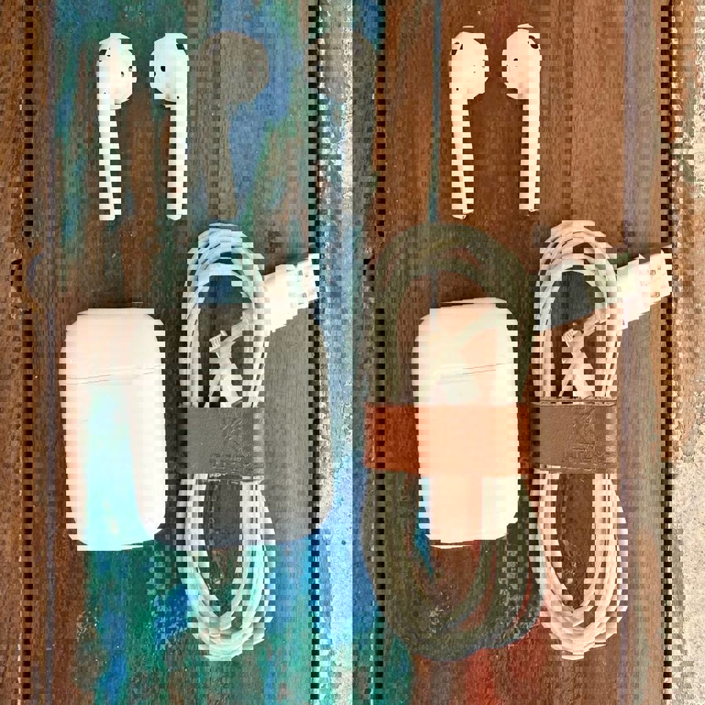 Наушники Apple AirPods c зарядным кейсом и проводом. Состояние очень хорошее. Пользовался полтора года еще пол года пролежали в тумбочке, так как купил следующее поколение.