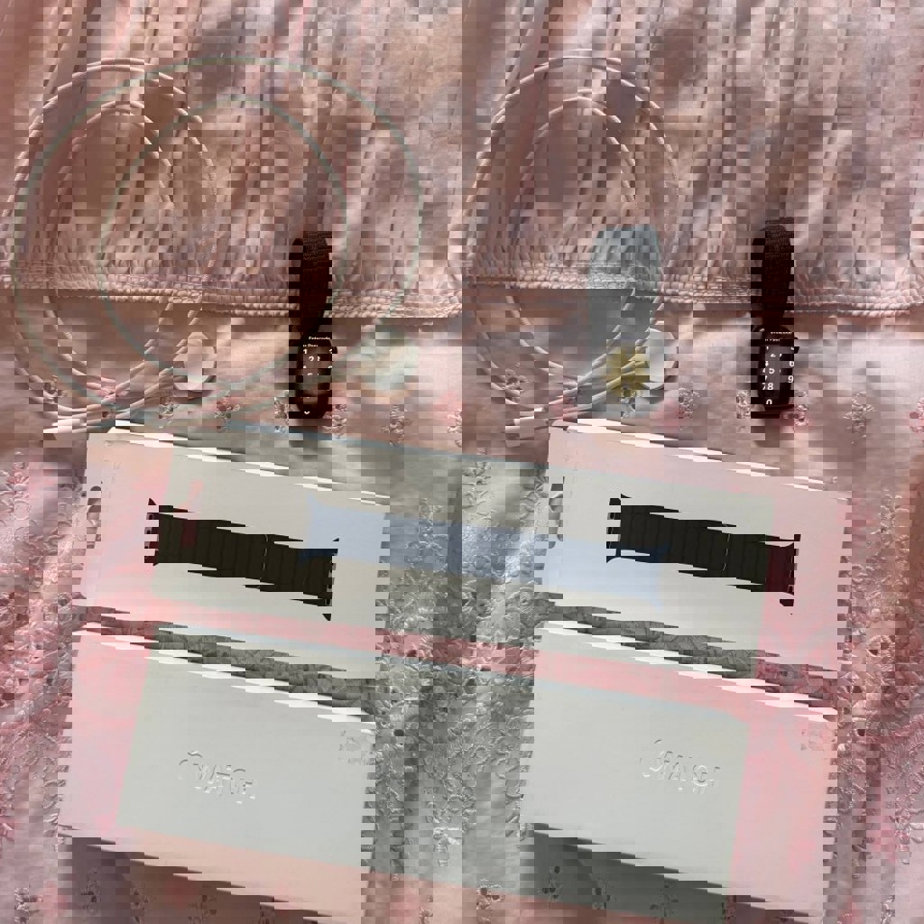 АКБ 95%. Есть небольшие царапины, видно на фото. Никак не влияют на работу часов. В подарок оригинальный магнитный ремешок синего цвета.