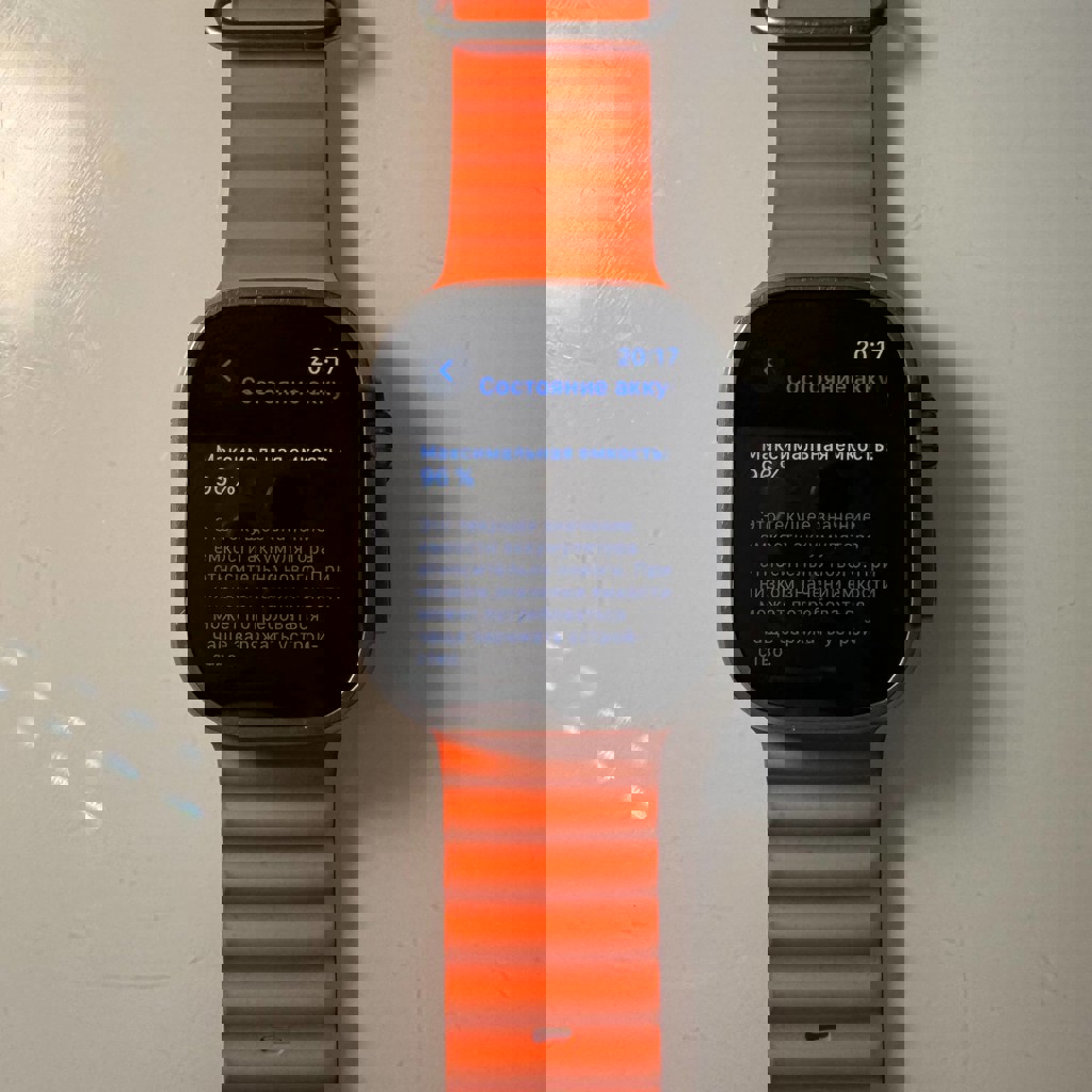 Состояние топ, без скрытых косяков. Все функции работают. Аккумулятор 96%. В использовании с прошлого года, без падений и ремонтов. Следы только от обычного ношения. Комплект — как на фото. Продаю, потому что не использую.