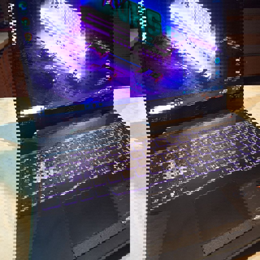 В идеальном состоянии. Характеристики: Ryzen 5 4600h, 16Gb DDR4 3200, SSD NVME 256Gb, SSD 500 Gb, RTX 3050 4Gb, Full HD 1920x1080 144Hz