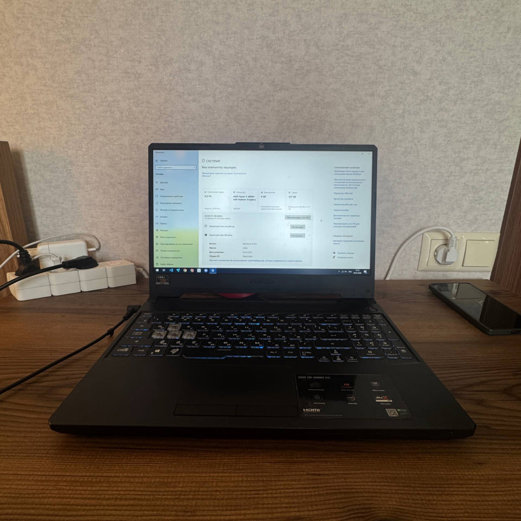 Продам ASUS TUF Gaming (точную модель не вспомню — могу уточнить по серийному/наклейке по запросу). Характеристики: • CPU: AMD Ryzen 5 4600H (3.0 ГГц) • RAM: 16 ГБ (3200 МГц) • GPU: NVIDIA GeForce GTX 1650 Ti 4 ГБ + встроенная • SSD: ~512 ГБ • Экран: 144 Hz (Adaptive-Sync). Состояние: Корпус даже без царапин, бережно писал на нем код. Батарея еще держит заряд. Комплект: Зарядник. Причина продажи: Стоит без дела.