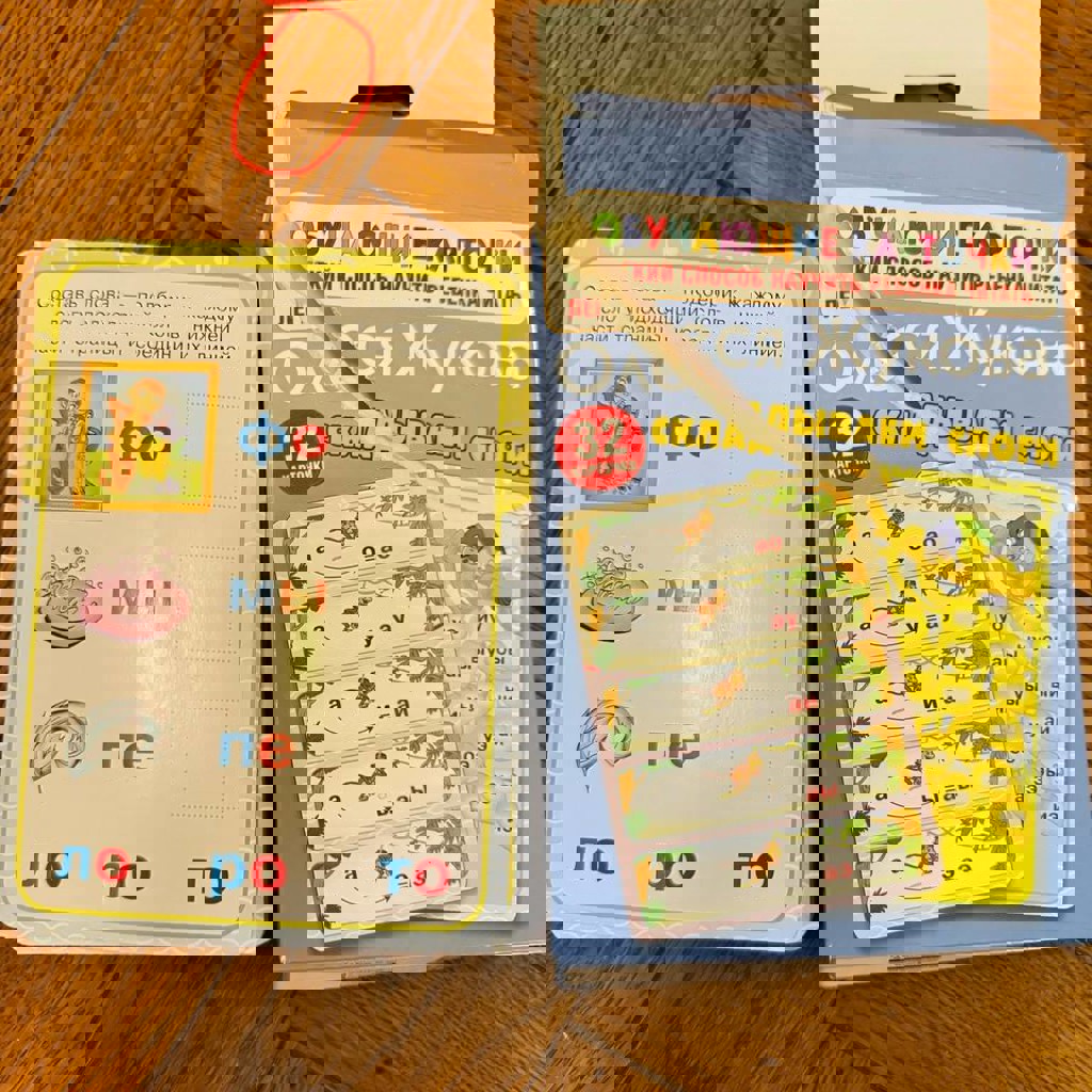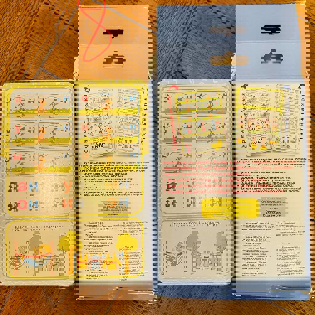 8. Карточки для обучения чтению. Коробка пострадала, прикладываю для информации. Положу карточки в зип пакет. 5 лари