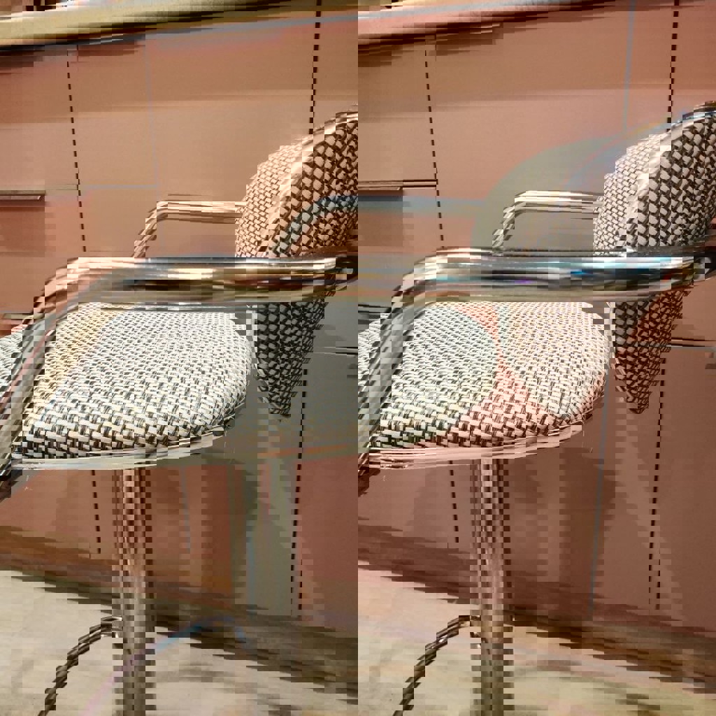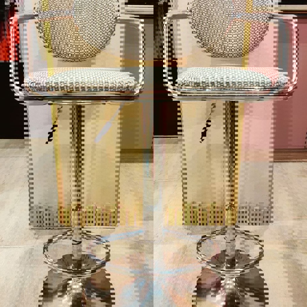 Продаю пару барных стульев с интересной фактурной обивкой и хромированными подлокотниками. Отдаю очень дешево, так как у одного стула есть повреждение. Первый стул: В полном порядке, можно смело пользоваться. Второй стул (с нюансом): Сломана спинка. Она на месте, но сильно отклонена назад. Опираться на нее нельзя! Но на стуле все еще можно сидеть как на обычном барном табурете, либо починить спинку, если у вас есть нужные инструменты и желание. Газлифты (регулировка высоты) работают. Продаю только парой!