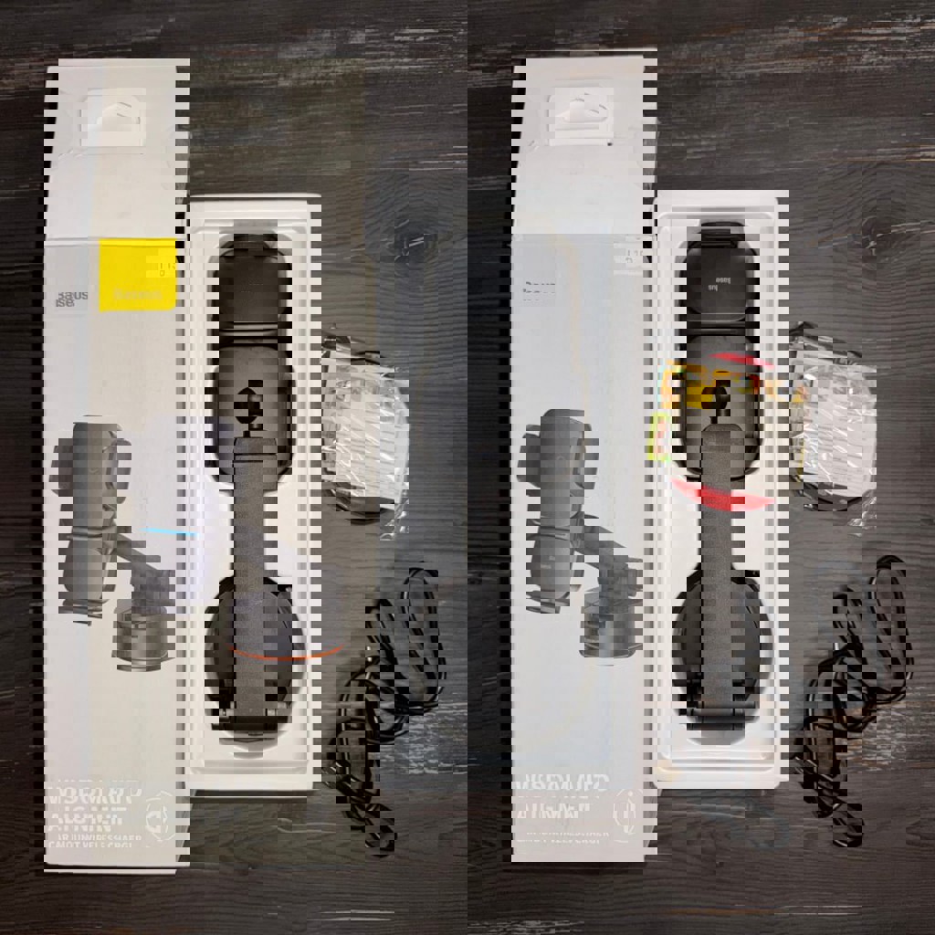 Держатель абсолютно новый, даже плёнки не сняты с присосок. Покупался пару месяцев назад для поездки в путешествие на авто, но я ни разу им не воспользовался потому что в машине было собственная медиасистема с навигацией. У держателя есть встроенная беспроводная зарядка на 15W (максимум для iPhone) и также есть автоматическое открытие/закрытие держателя. Сзади есть сенсорная кнопка, которая открывает лапки держателя, а когда вы ставите телефон в него он автоматически закрывается с помощью моторчика и крепко держит телефон. Покупал специально с автоматикой, чтобы было удобно снимать/ставить телефон одной рукой. У держателя длинная телескопическая ножка и крепление на стекло. Подключается через разъём Type-C, кабель есть в комплекте.