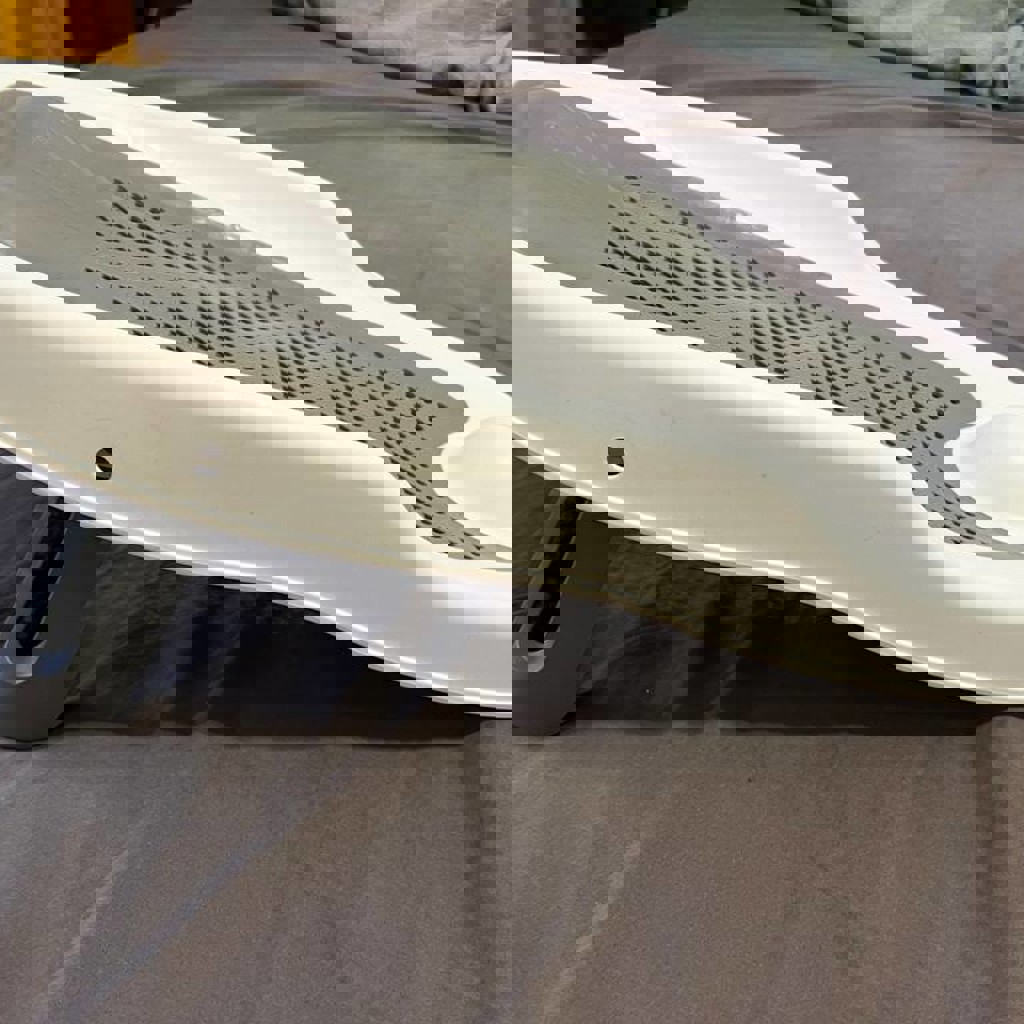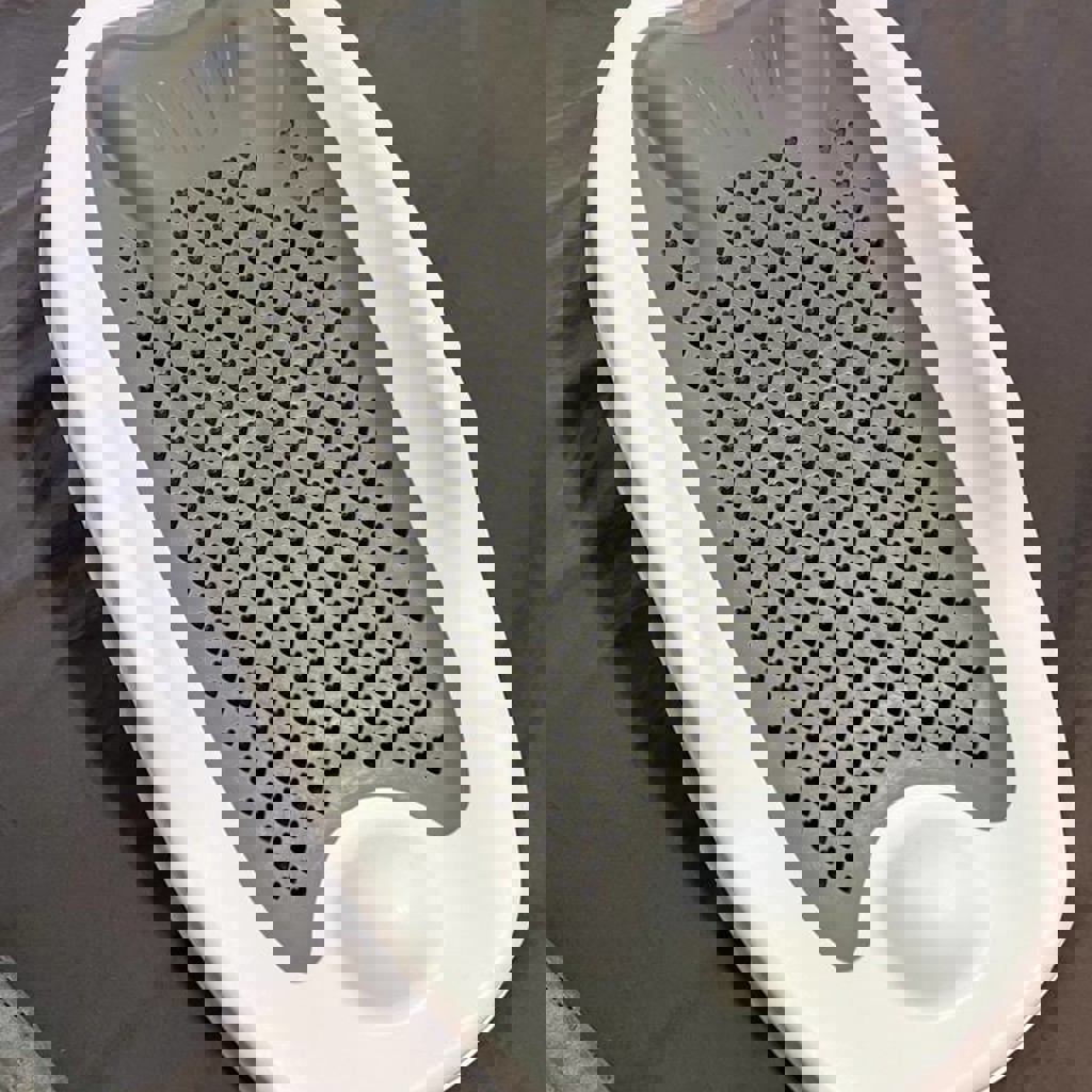 Мягкая силиконовая спинка и подголовник комфортны для нежной кожи малыша, а складная ножка позволяет хранить горку подвешенной на стене (сверху имеется отверстие для крючка).