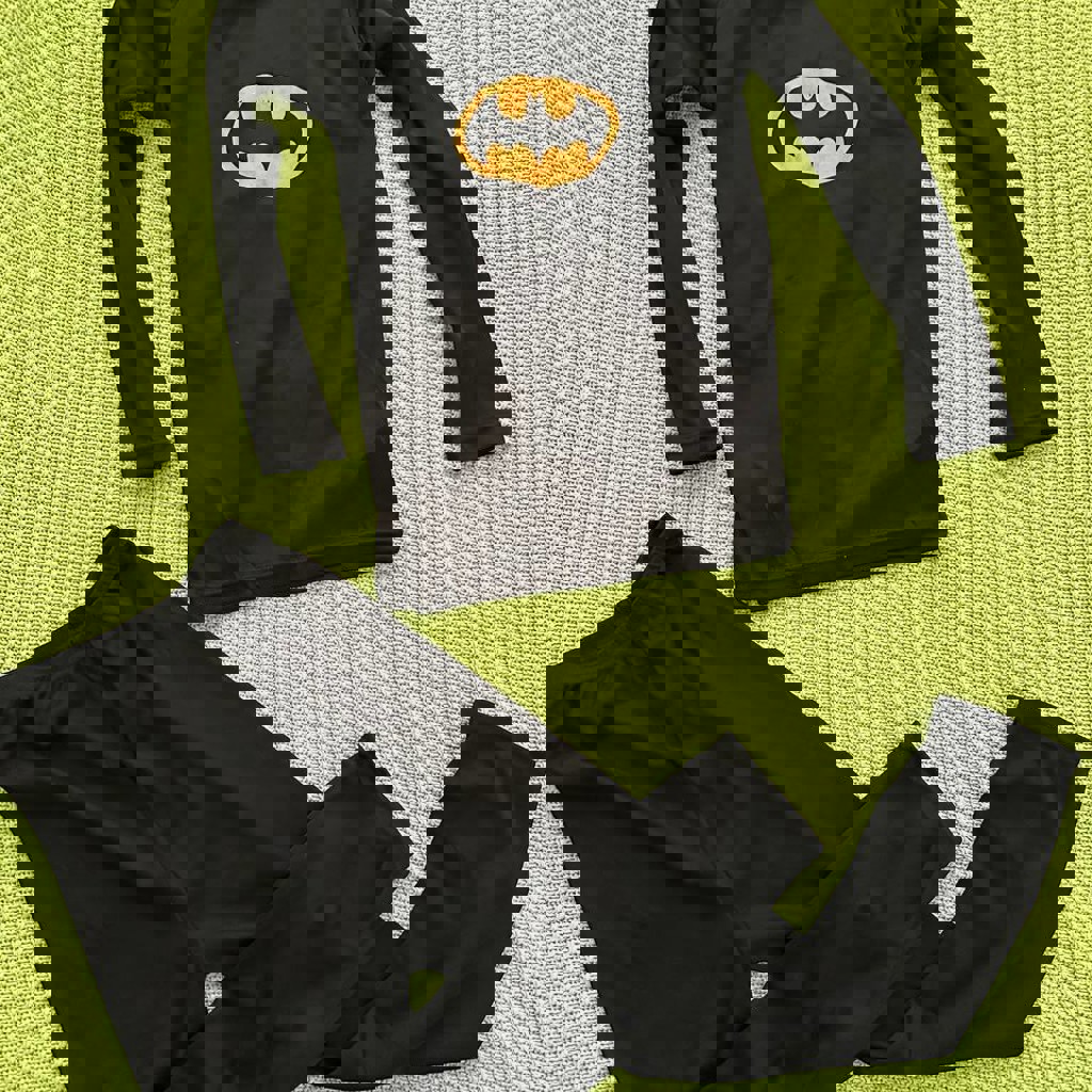 Костюм Бэтмена на рост 110-120. Штаны ни о чем, под верх лучше что нибудь еще одеть, чтоб телу было приятнее.