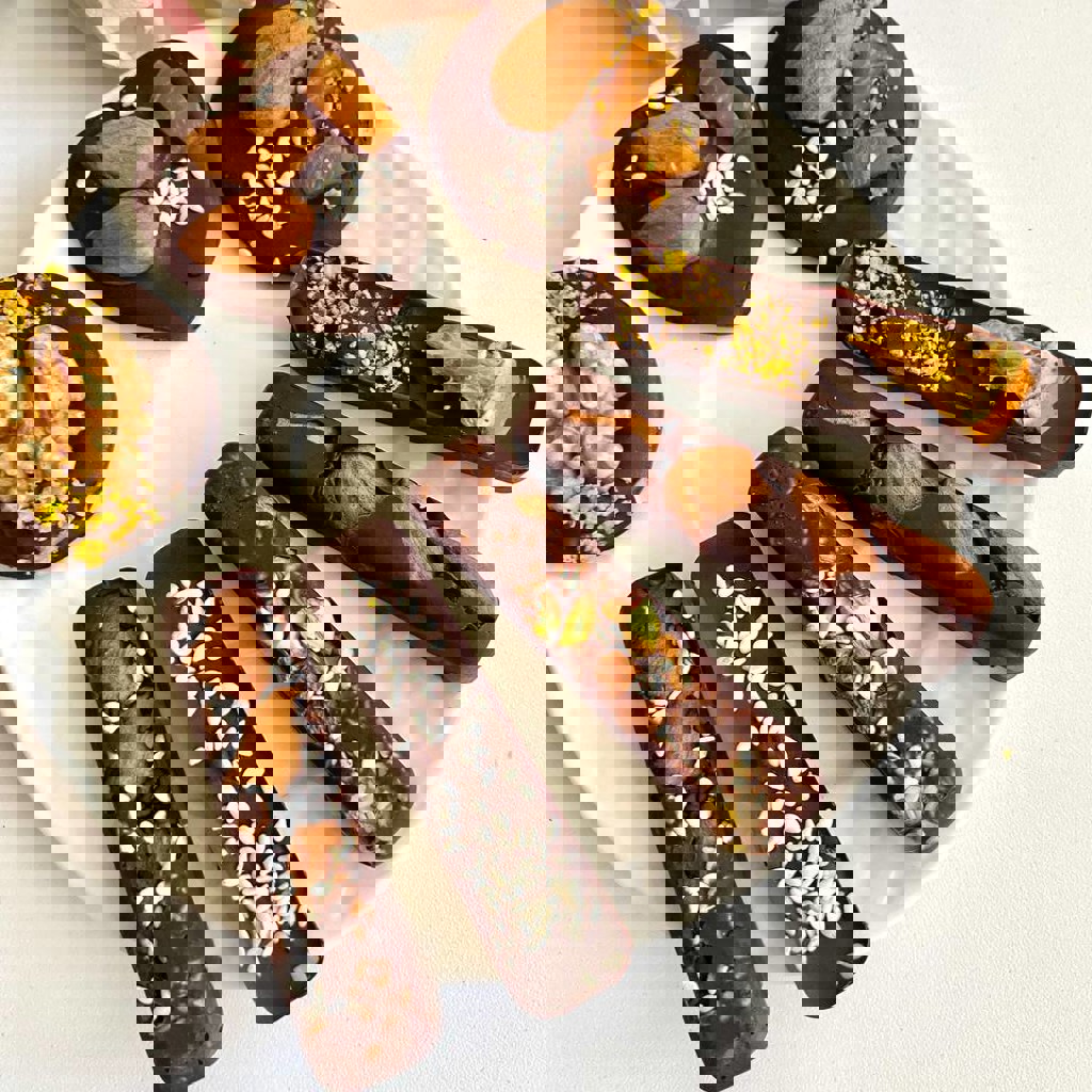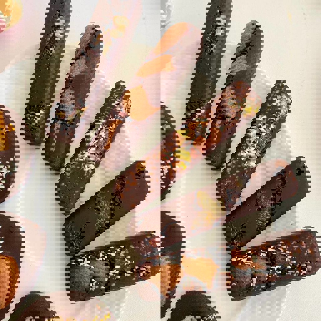 Батончики из бельгийского шоколада Callebaut с добавлением орехов, семечек, ягод, сухофруктов. Можно выбрать из темного, молочного, розового, белого шоколада. Все натуральное и вкусное.