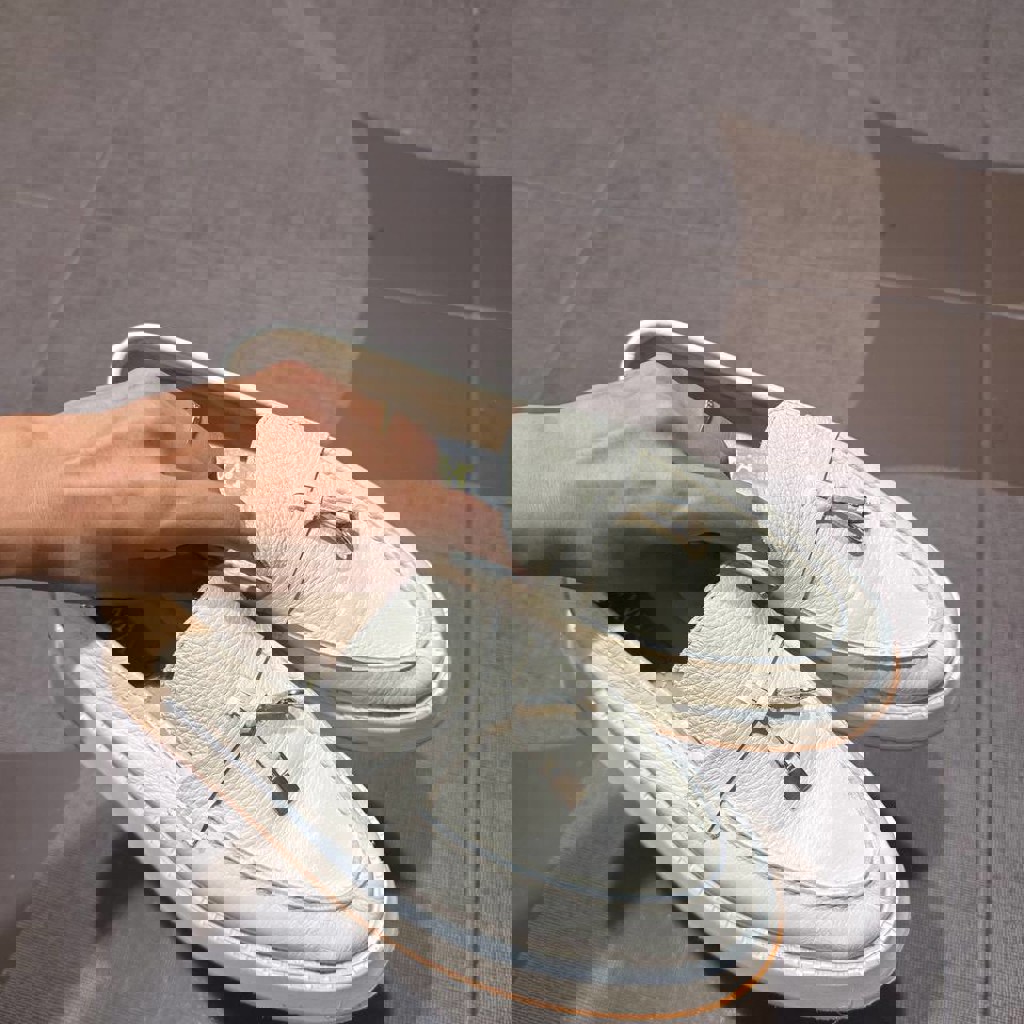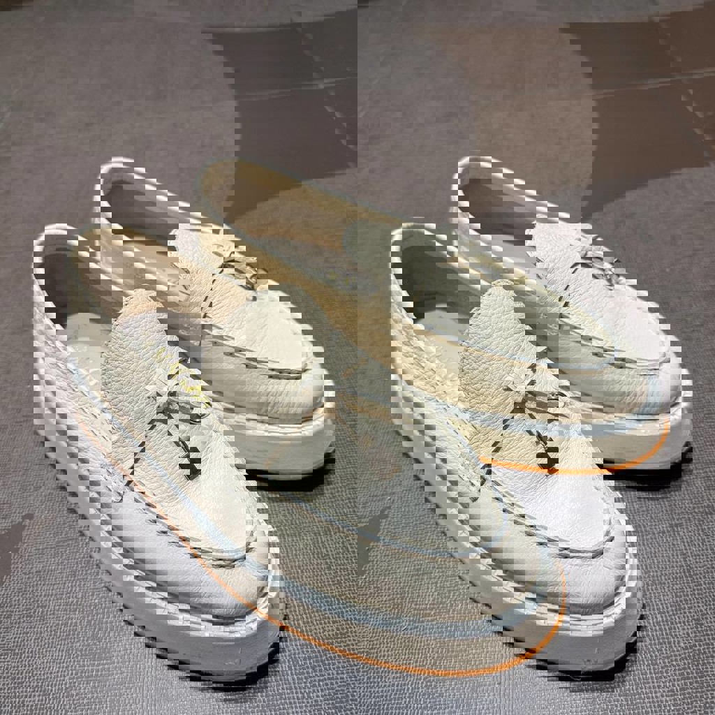 Бежевые лоферы женские , зернистая кожа и оранжевая подошва ,38 размер