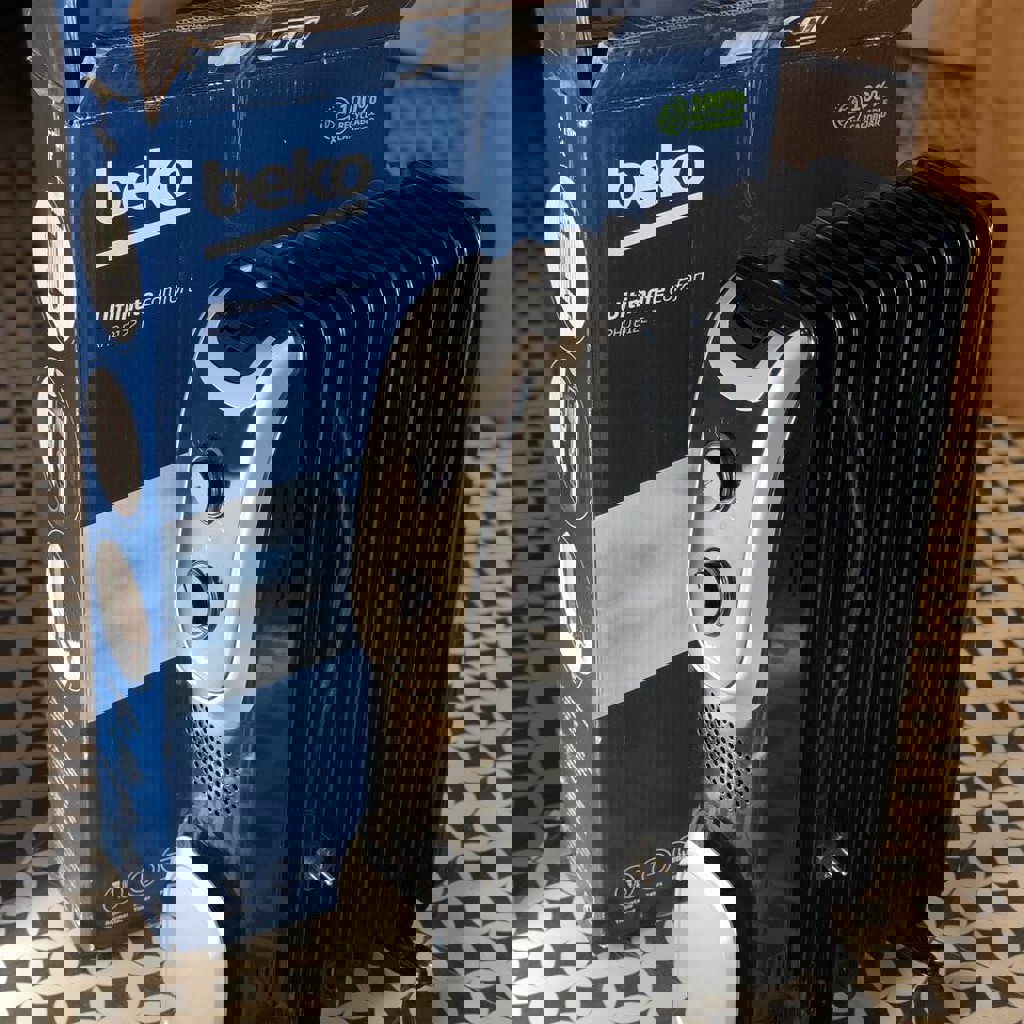 Масляный обогреватель Beko RHO7123 мощностью 2300 Вт. Радиатор быстро нагревает комнату, есть регулировка температуры, длина шнура 1,8 м.