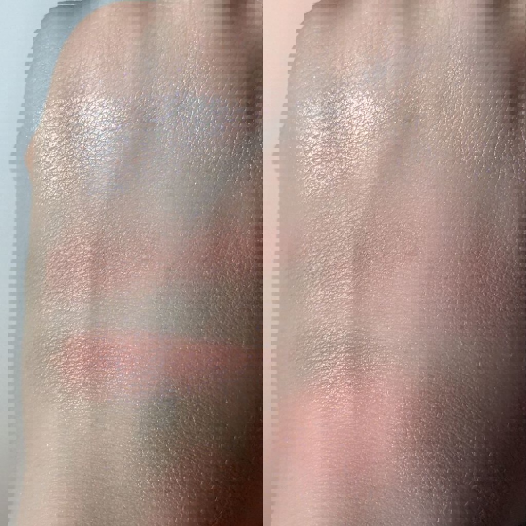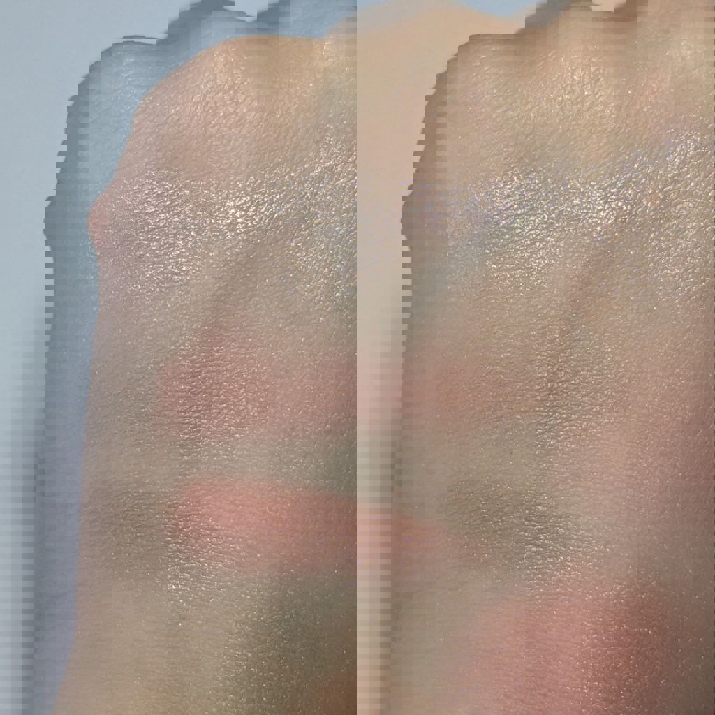 Рождественская лимитка. Состав: 2 румян (Shellie, Dandelion) и один хайлайтер - подсвечивающая пудра (Dandelion Twinkle). Румяна сатиновые средней пигментации, мб чуть выше среднего. Чуть пылят даже при наборе мягкой синтетикой. Хайлайтер - пудра может добавить румянам больше лоска/блеска, можно нанести интенсивнее как хайлайтер, а если легкой кистью - как финишная пудра типа Hourglass. Если сильно наслаивать или набирать влажным способом на моей светлой коже появляется полоса. 2 свайпа→свотч на коже 4,5 фото - при естественном освещении. Сверху свотчи пальцем без наслаивания, ниже - растушеванные свотчи, еще ниже - свотчи кисточкой, хайл нанесен влажным способом; 6,7,8 фото - то же самое, только при электрическом свете.