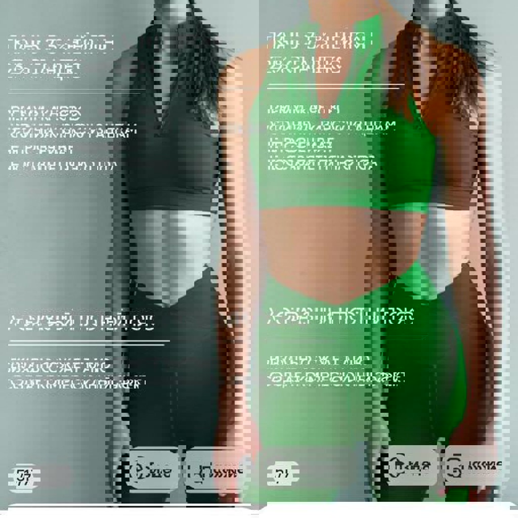Спортивный комплект включает рашгард, топ и леггинсы с эффектом push-up (без подкладок, за счёт кроя).