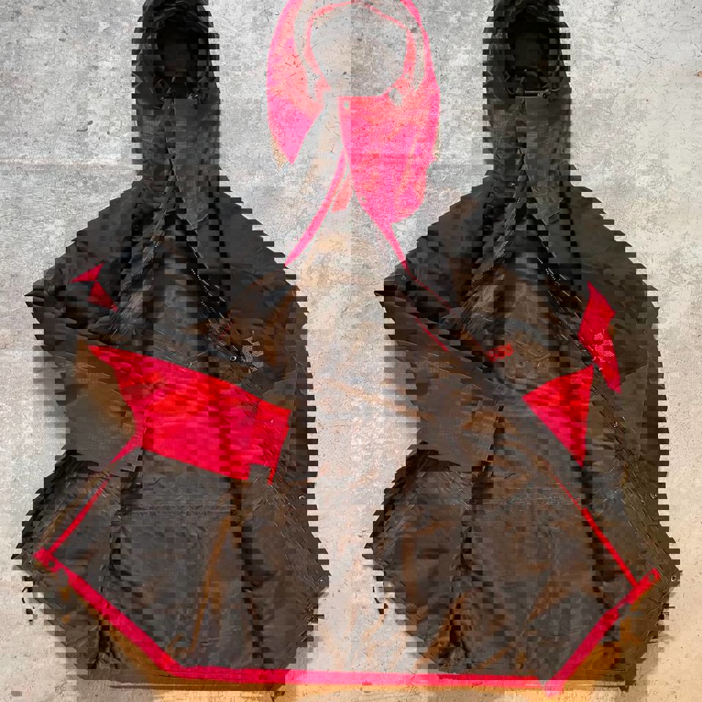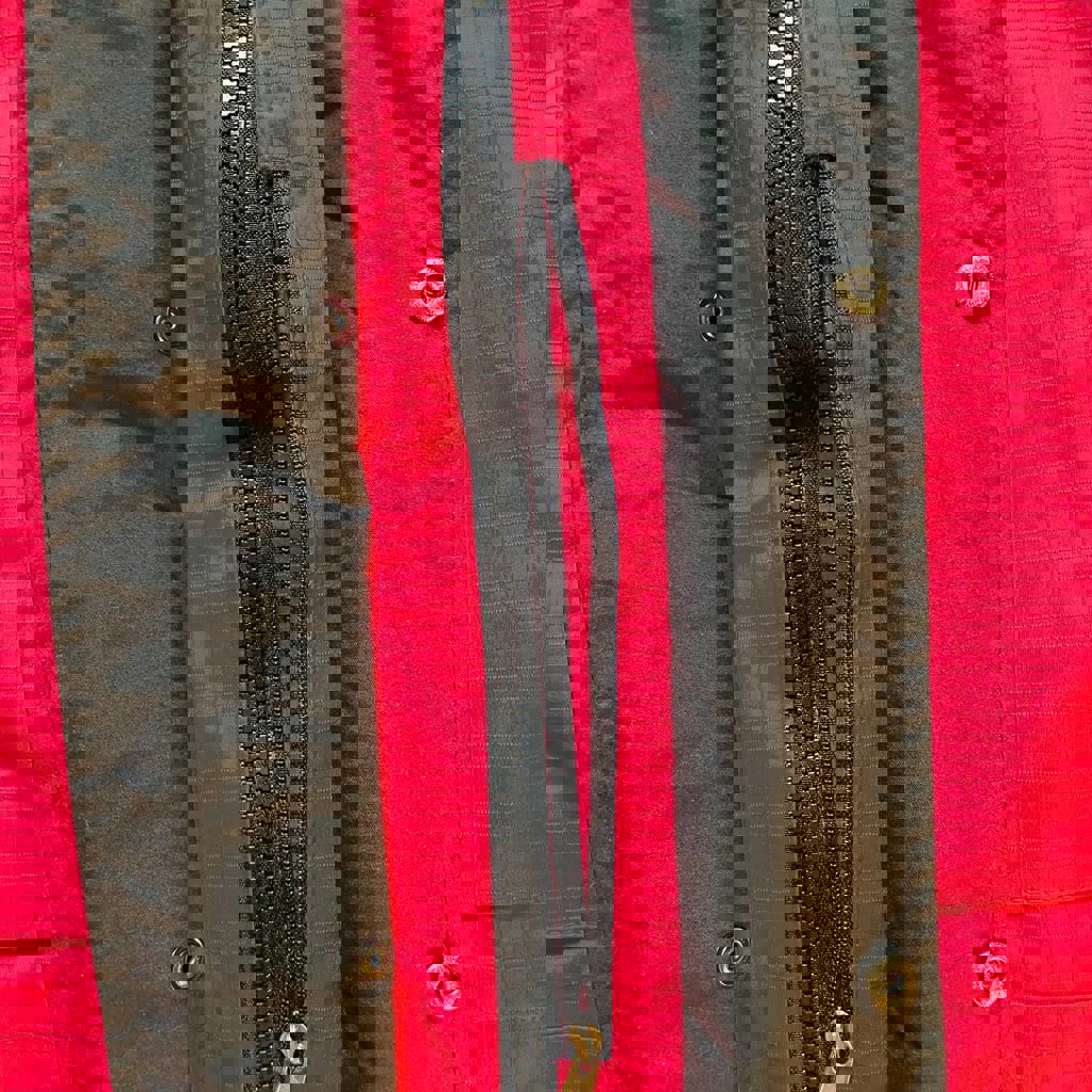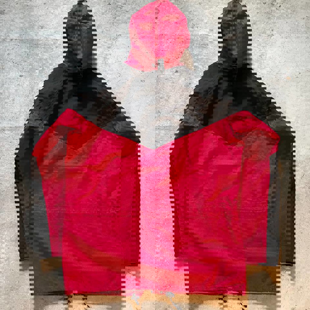 Не промокает и не продувается. Каркасный капюшон с козырьком. Множество утяжек для дополнительной защиты от непогоды. Есть молния для флисового подклада. Молнии YKK Vislon. Отличное состояние.