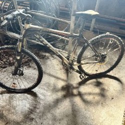 Колеса 26", 7 передач, рама 53 см, дисковые тормоза, noname. Катит хорошо. Требует ухода после зимы - смазки цепи и починить камеру (торг).