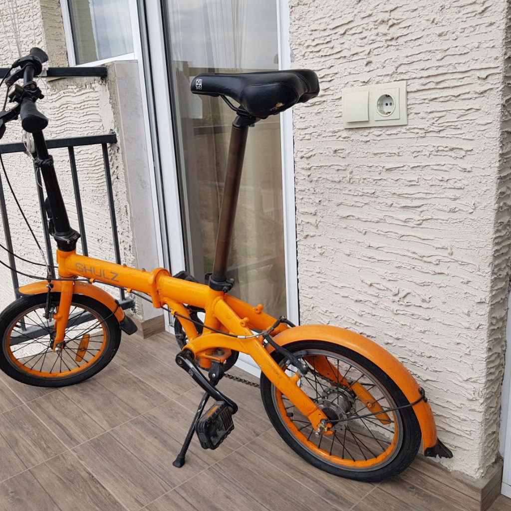 Велосипед SHULZ. 3 скорости. Складывается. Разрешенный вес - до 100 кило. Лёгкий и маневренный, самое то ездить по улицам. Заднюю камеру колеса надо заменить, или перечинить, воздух держит максимум час. Электронасос в подарок.