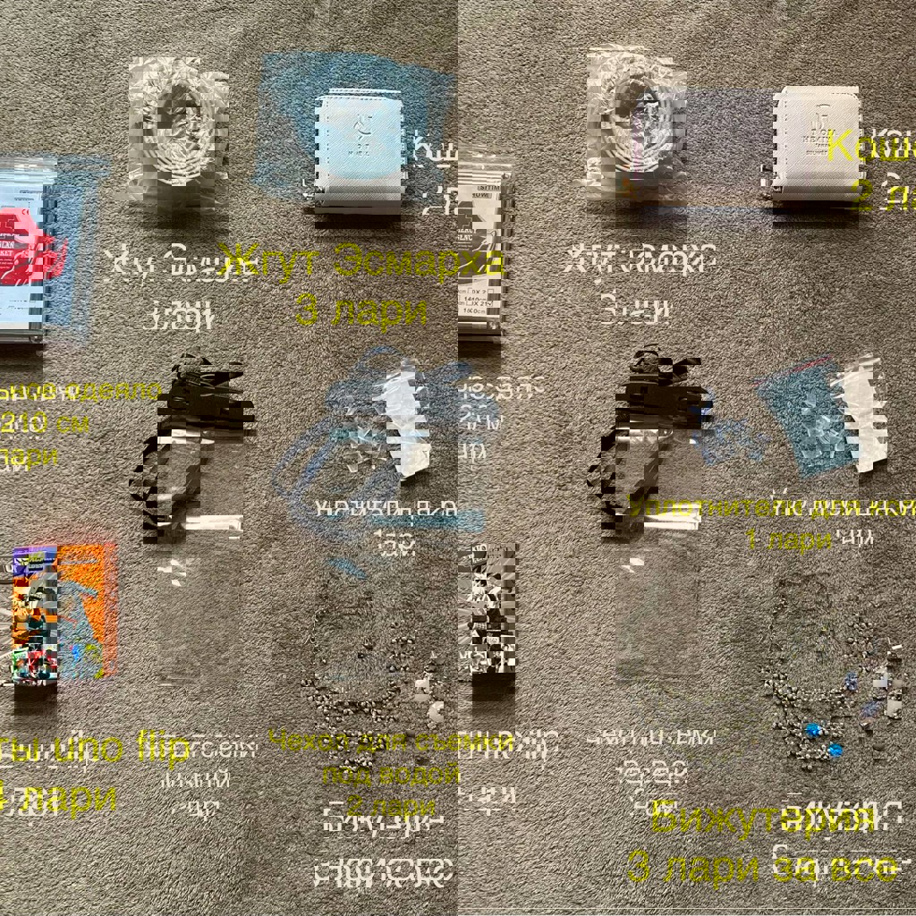 Бигуди, пергамент, скалка, краска белая для обуви и подошвы, свечи, подсвечники из гипса, спасательное одеяло, жгут кровоостанавливающий эсмарха, чехол для телефона для съемки под водой, кошелек, бижутерия, серьги, подвеска, карты уно флип, uno flip, уплотнитель для колец.