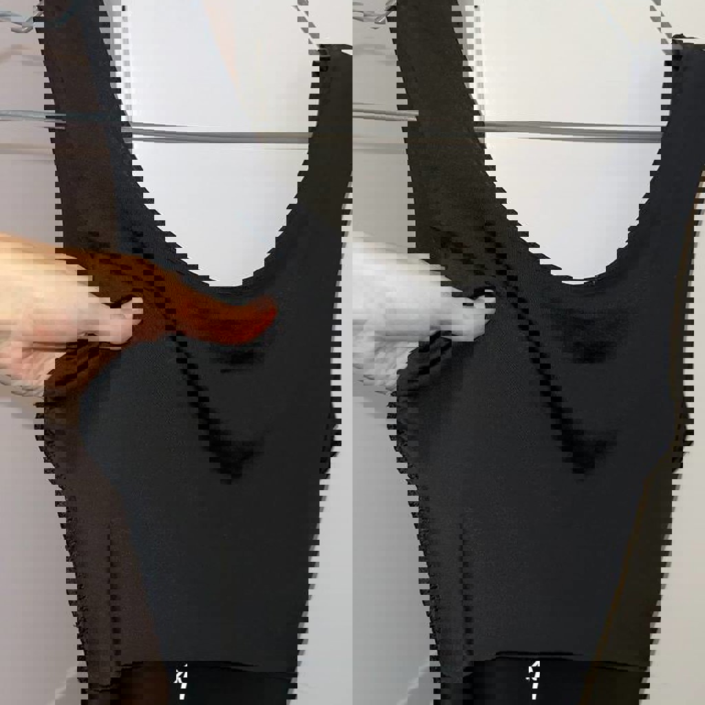 Стильный базовый боди, идеально сидит по фигуре. Универсальный черный цвет - под любой образ. Есть дополнительное уплотнение ткани. Отлично подойдет под джинсы, юбки или как база под пиджак.