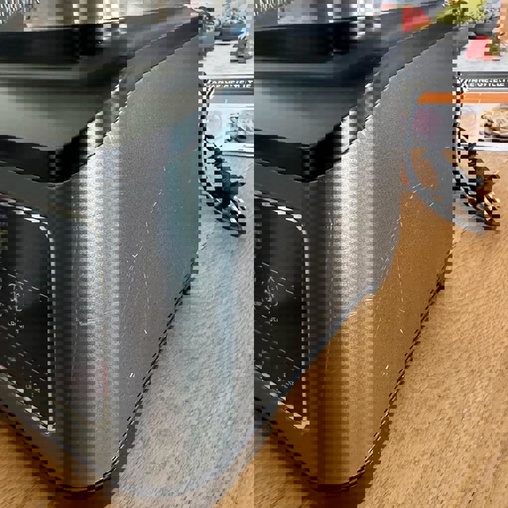Использовался около 1 месяца, работает идеально. Есть несколько царапин на корпусе (на работу не влияют), поэтому продаётся за половину цены. В комплекте 2 стакана. Мощный и удобный — отлично подходит для смузи, супов и повседневного использования.