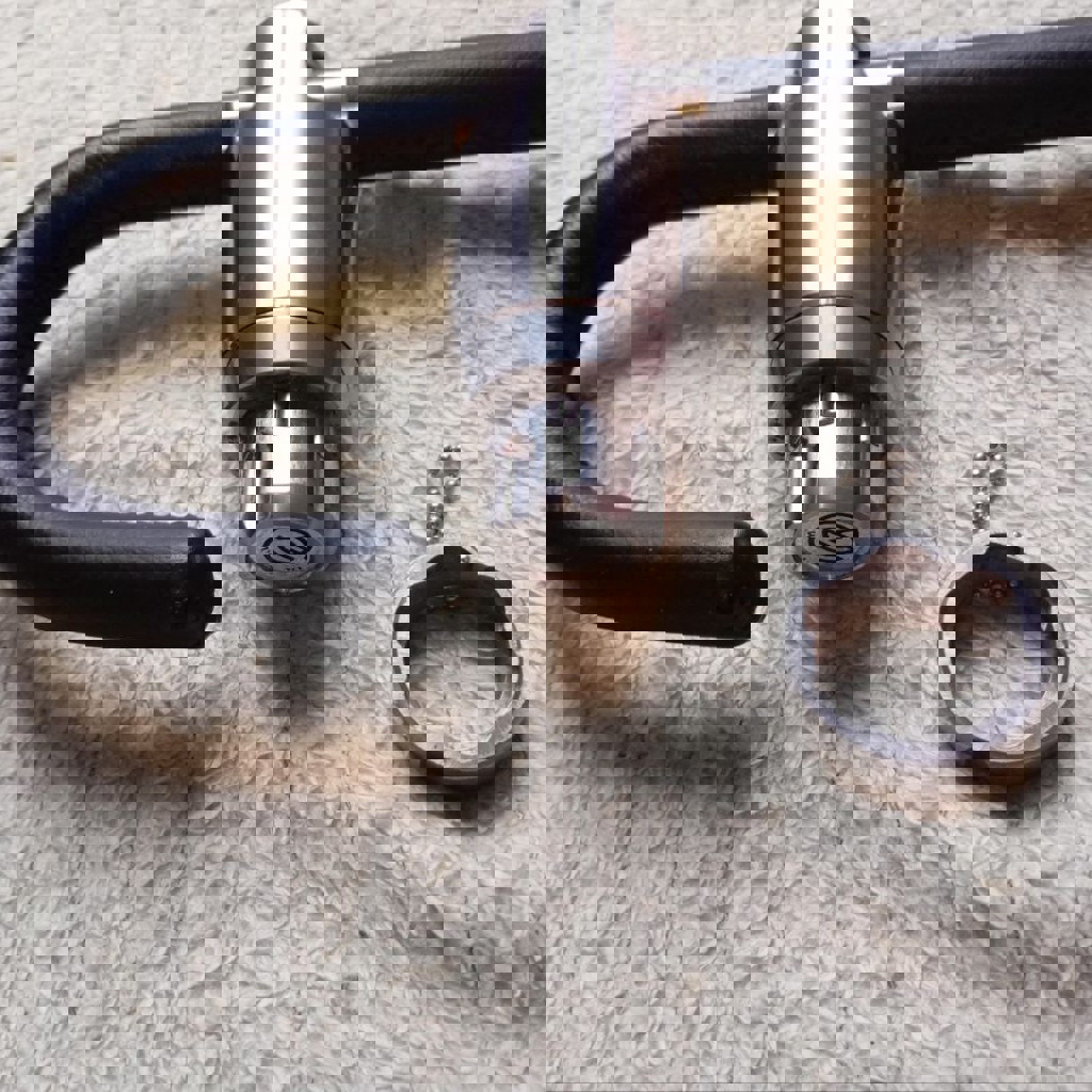 Не требует дополнительного монтажа. Удобно ставить и снимать. Уникальный ключ. Нержавеющая сталь 20х13, 40х13. Обтянут итальянской кожей. Очень тяжёлый.
