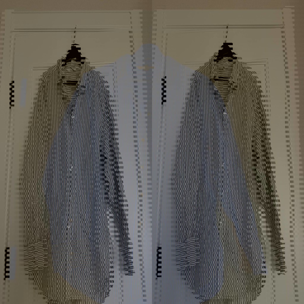 Рубашка голубая в полоску hm, размер s. 100% хлопок. Состояние отличное, почти не носила.