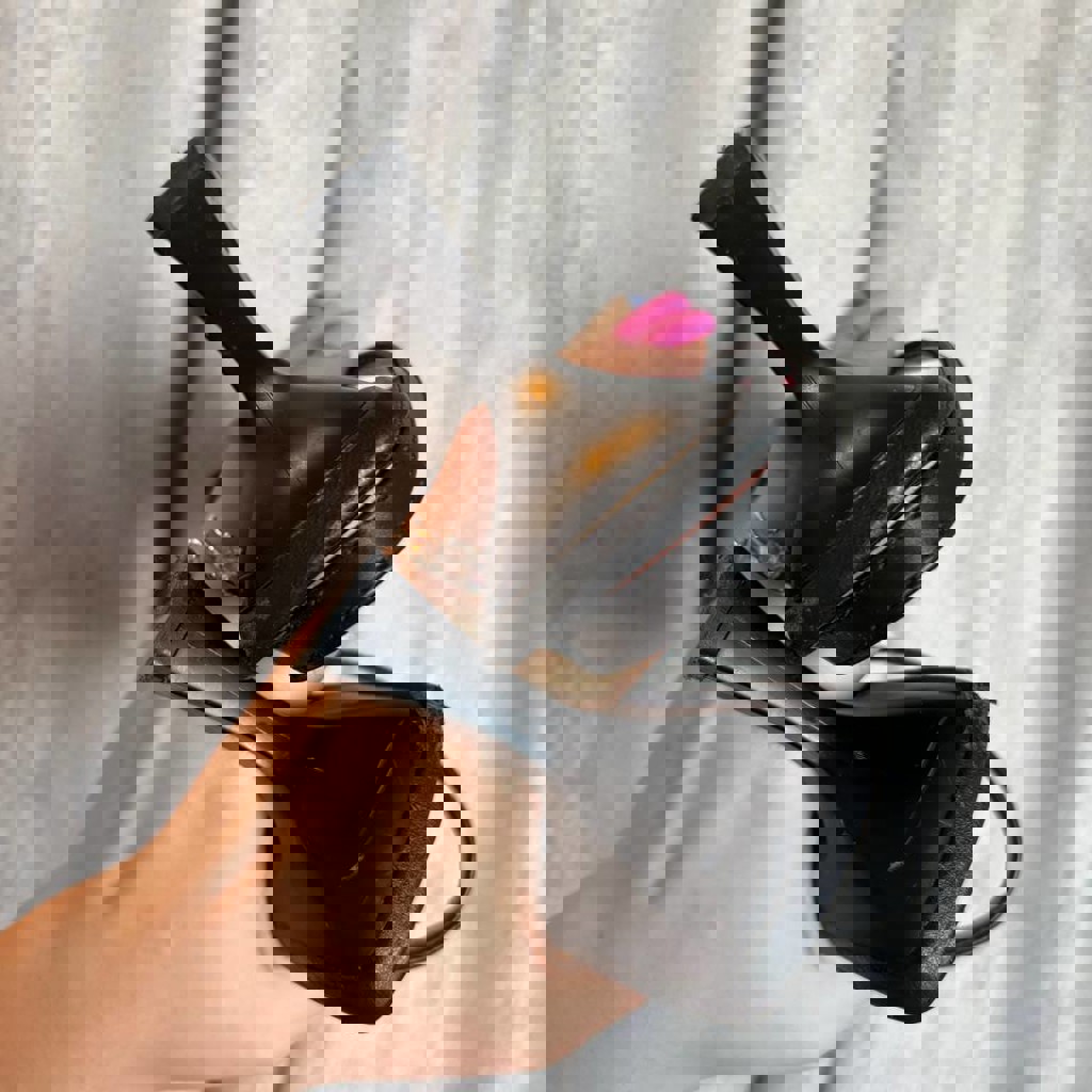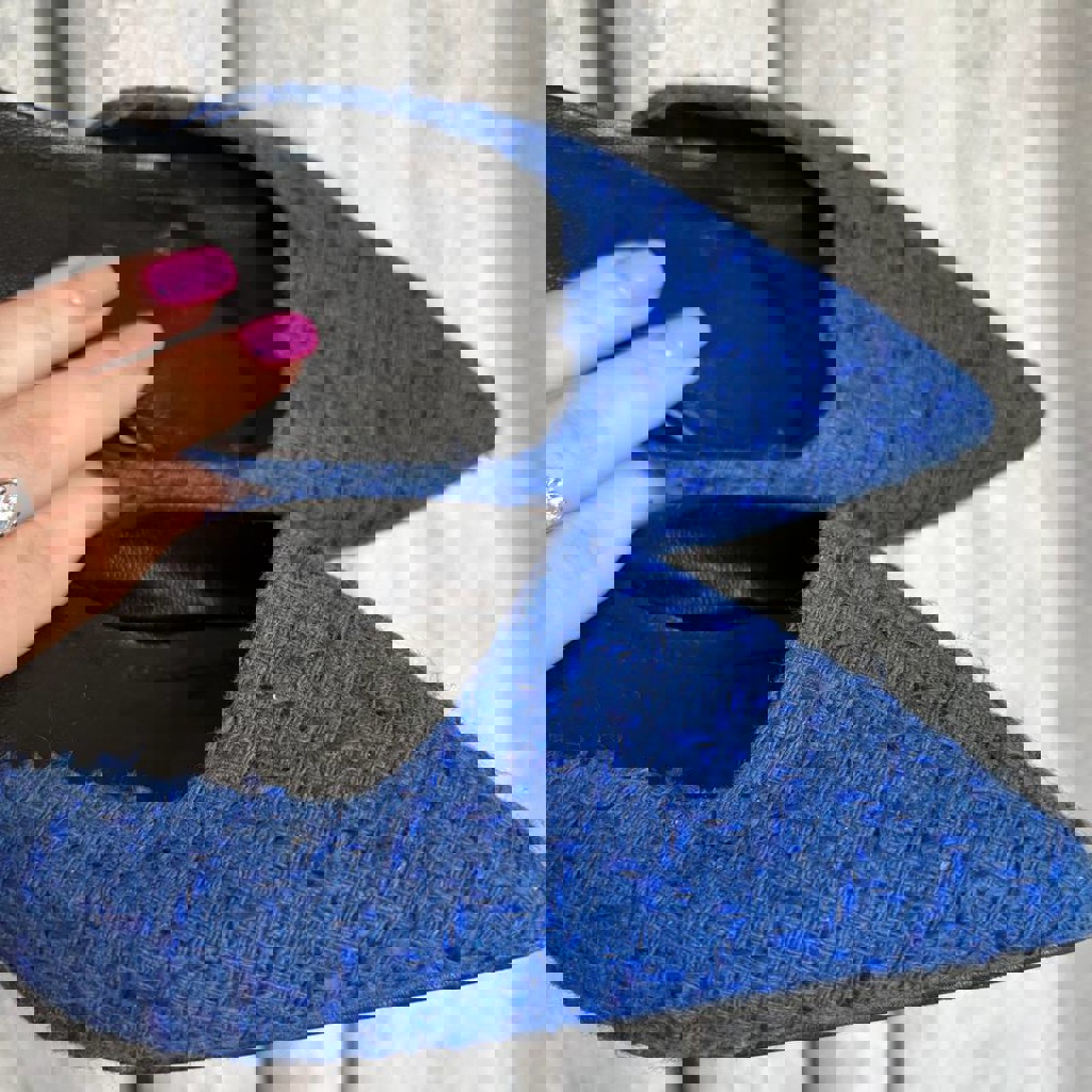 Туфли синие, немного чиркнула две туфли, но незаметно.