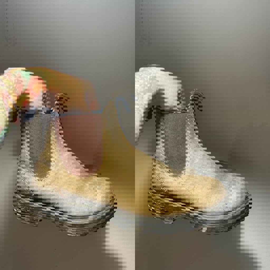 Видавшие виды Blundstone, на уверенный 39-40, ничего удобнее этой обуви нет. Есть небольшая царапина на носу, регулярно чистились в Sneakers hospital.
