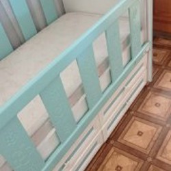 Бортики нестандартных размеров. Всего 3 куска (1 большой и 2 маленьких). В использовании были около 5 мес. Размеры: 32 см/85 см (2 шт), 32 см/116 см (1 шт).