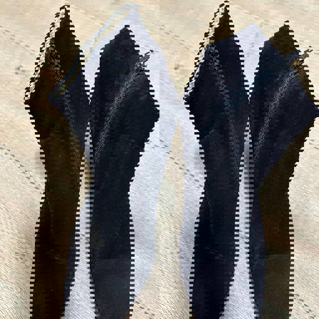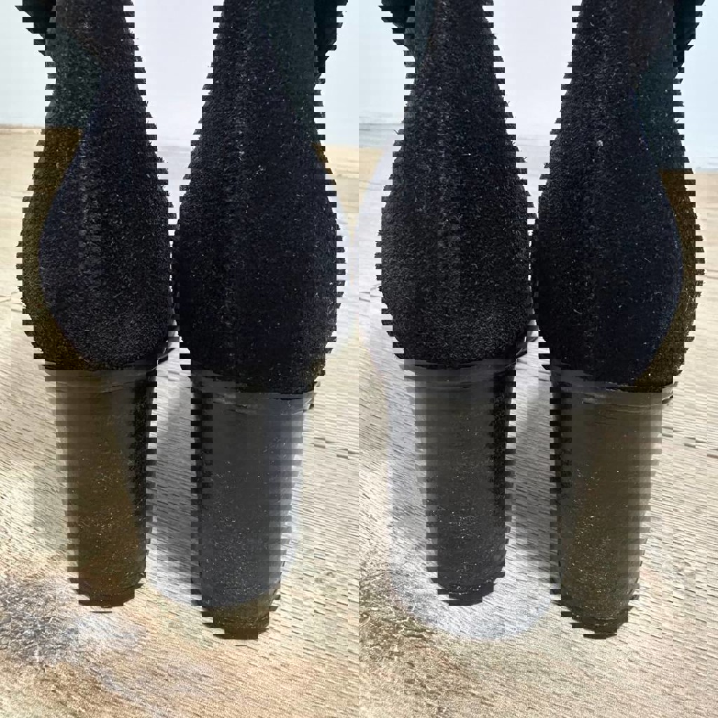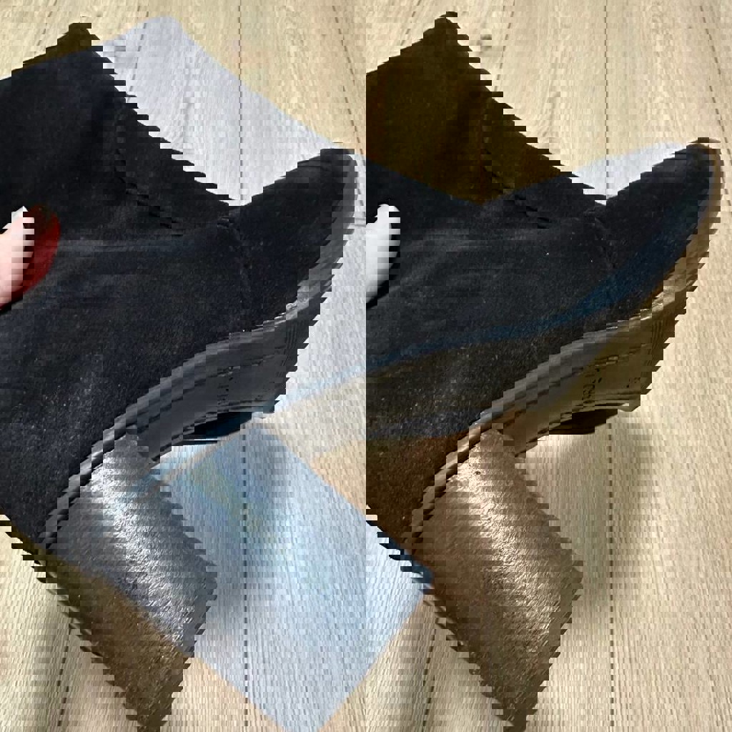 Нат. Замша, черный, размер 5 1/2. Состояние замши отличное - отсвечивает на фото. Очень удобные, но малы.